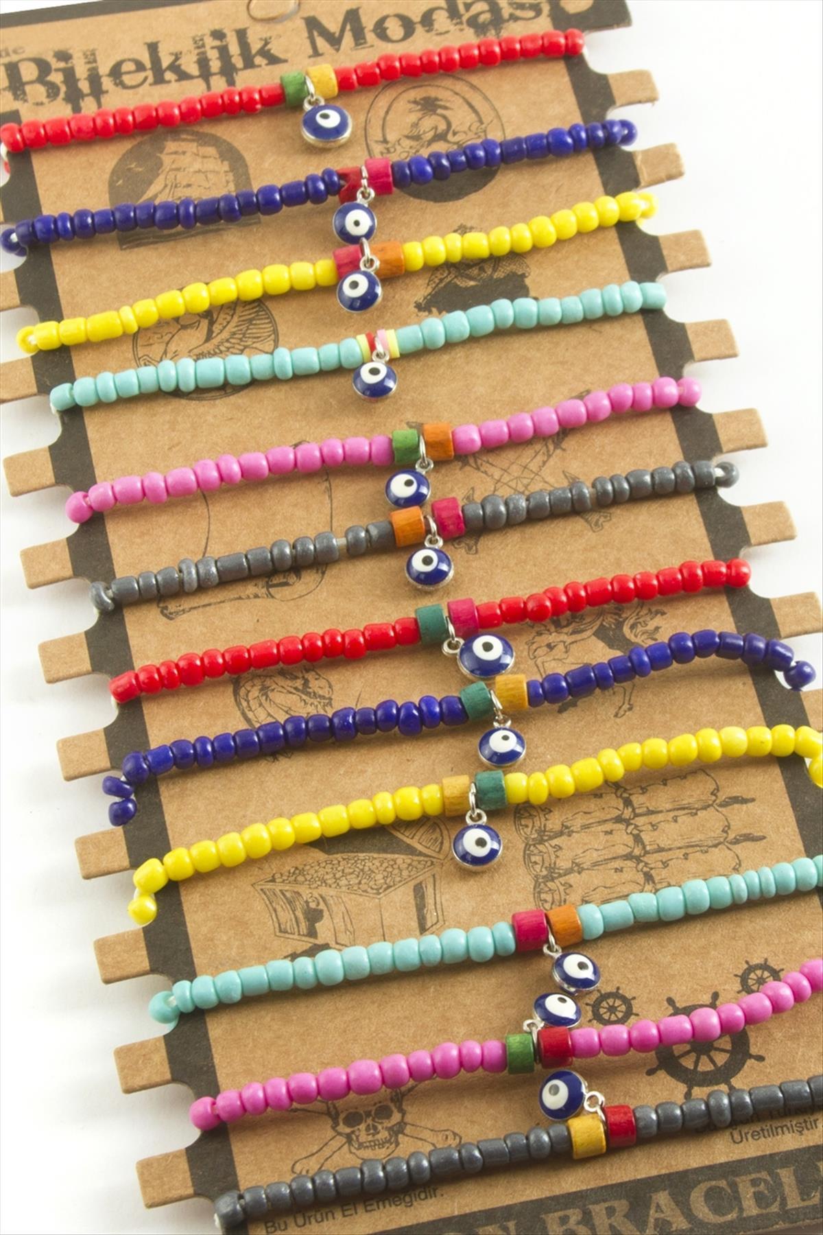 Bileklik; Ürün malzemesi boncuk ve iptir. Ürün arkası asansörlüdür. Bileğe göre ayarlabilir. 12 adet alımlarınız kartla beraber gönderilecektir. Fiyat 1 adet için geçerlidir.