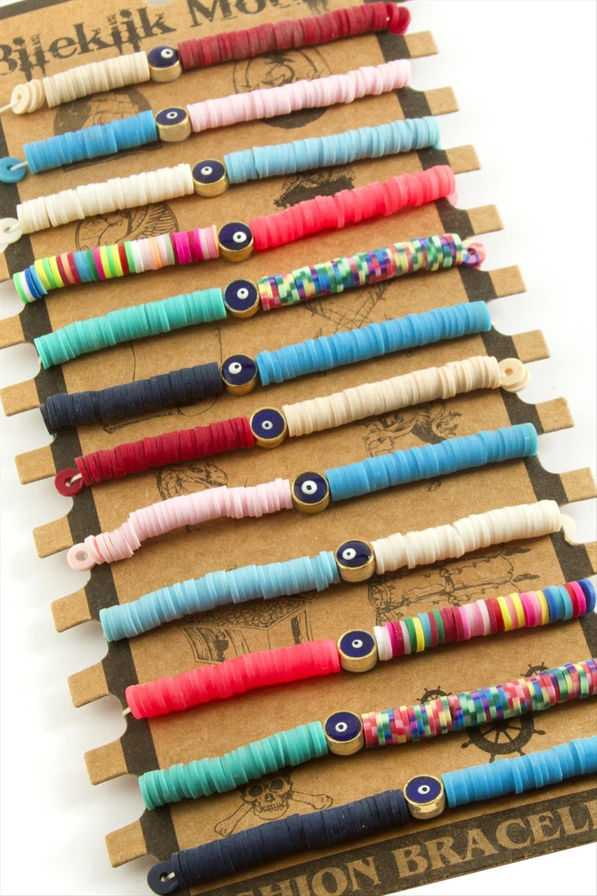 Bileklik; Ürün malzemesi fimo boncuk ve metaldir. Misina üzerine dizilmiştir. üretilmiştir. Renkleri asortilidir. Siparişlerinizde karışık olarak gönderilecektir.