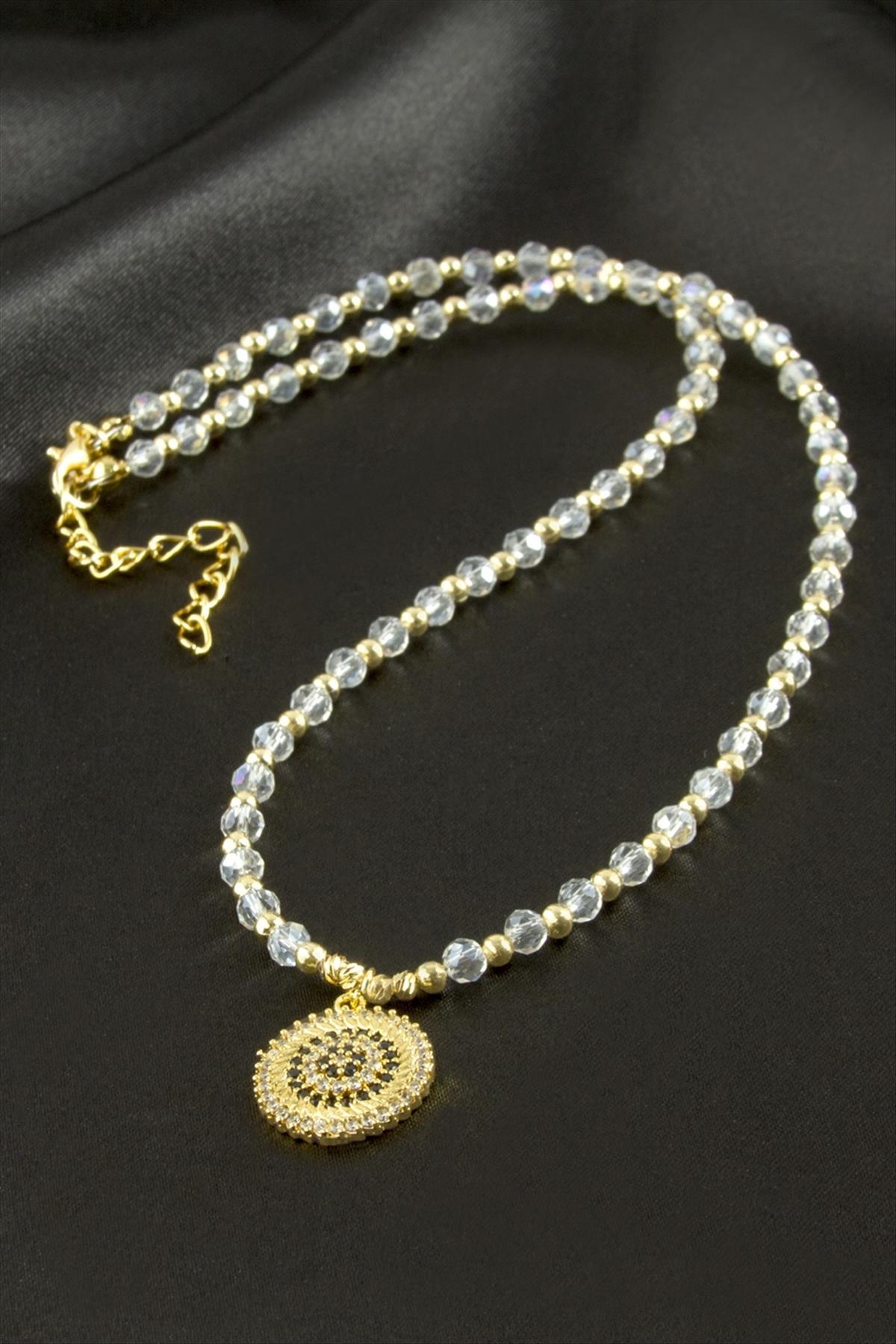 Kolye; Ürün malzemesi zirkon taş, dorika, kristal ve metaldir. Kolye boyu 45 cmdir. Ucundaki figür boyu 1,5 cmdir. 1 sınıf kaliteli malzemeden üretilmiştir.