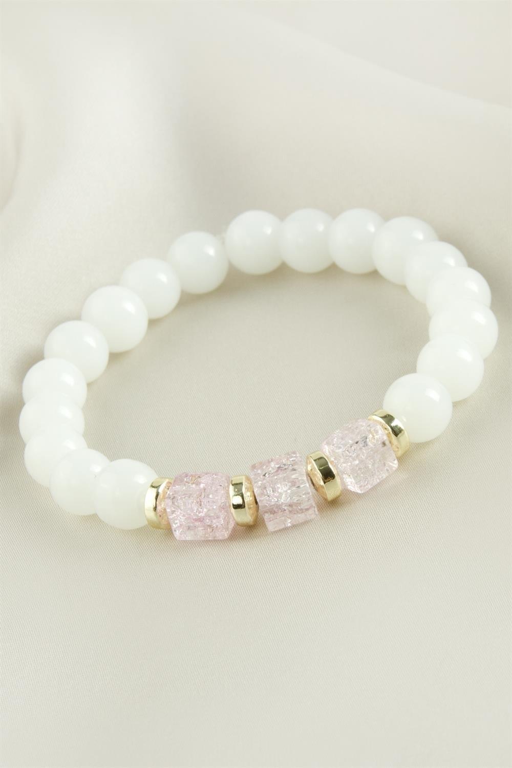 Bileklik: Ürün malzemesi necef ve kuvars doğaltaşından imal edilmiştir. Misina üzerine dizilmiştir. Misina esneme özelliği bulunmaktadır.