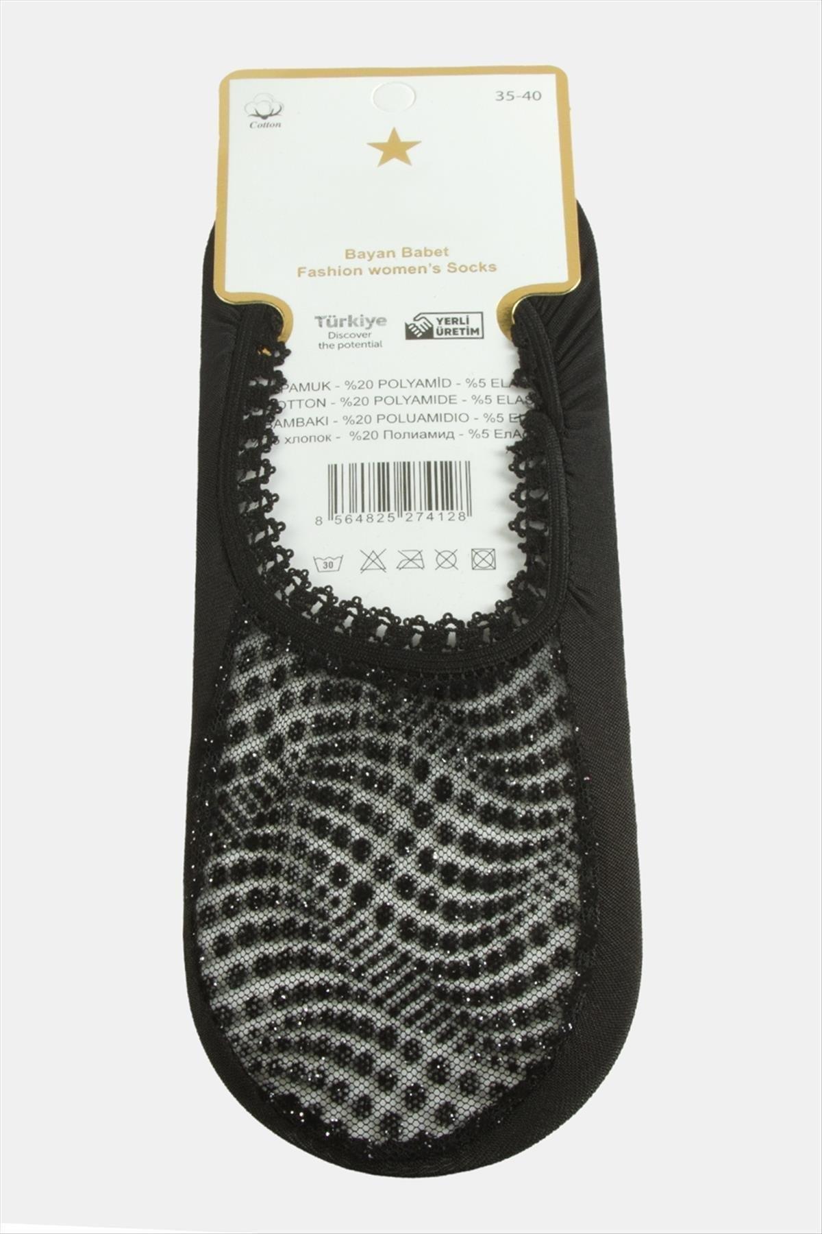 Çorap; Ürün malzemesi dantel kumaştır. Boyu 20 cm ve genişliği 8 cmdir. Ürün numarası 37-42 arasındadır. Ürün flot iran babet olarakta bilinmektedir.