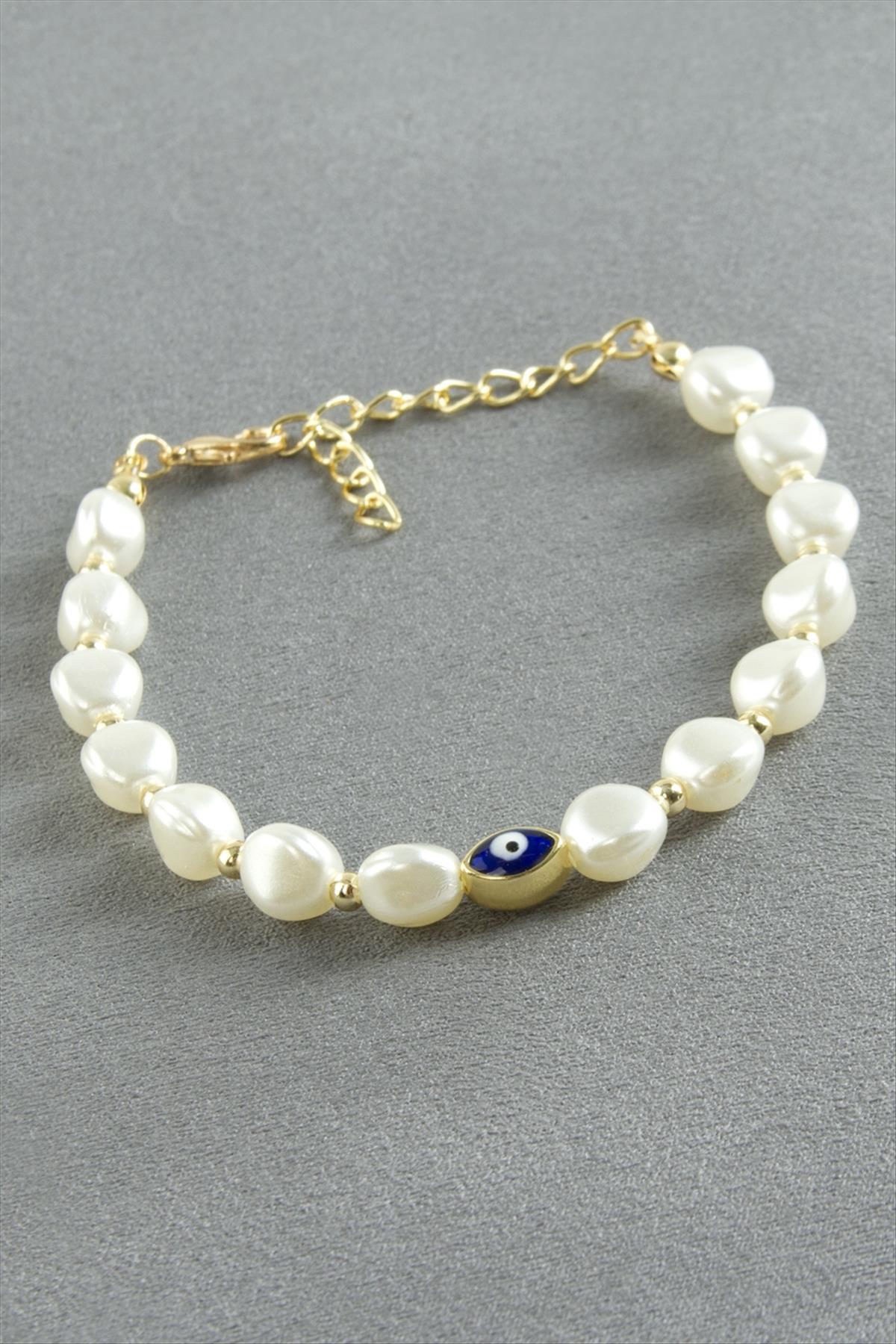 Bileklik; Ürün malzemesi metal ve incidir. Ürün boyu 19 cmdir. Fiyat 1 adet için geçerlidir. Kartlıdır.