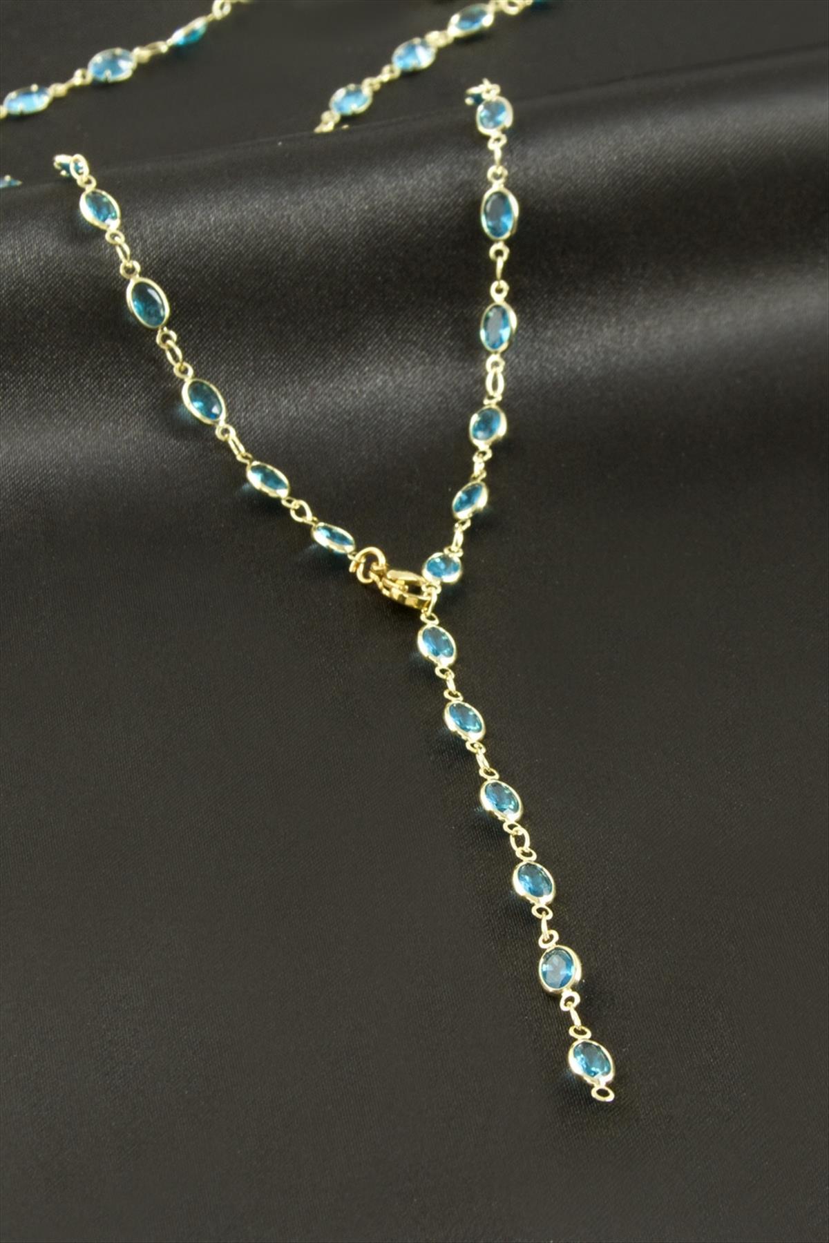 Kolye; Ürün malzemesi zirkon taş ve çeliktir. 1 sınıf kaliteli malzemeden üretilmiştir. Ürün boyu 54 cmdir. Kartlıdır.