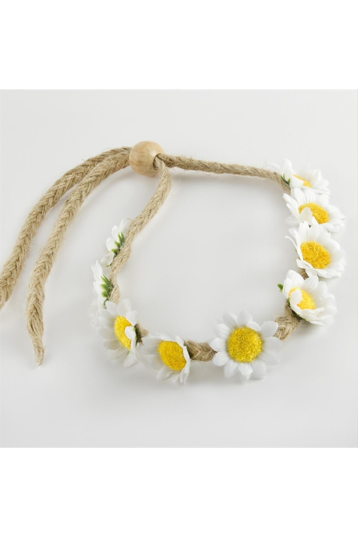 Taç; Ürün malzemesi hasır ve yapay papatyalardan üretilmiştir. Ürün kafa göre ayarlamalıdır. Ürün boyu 66 cmdir.