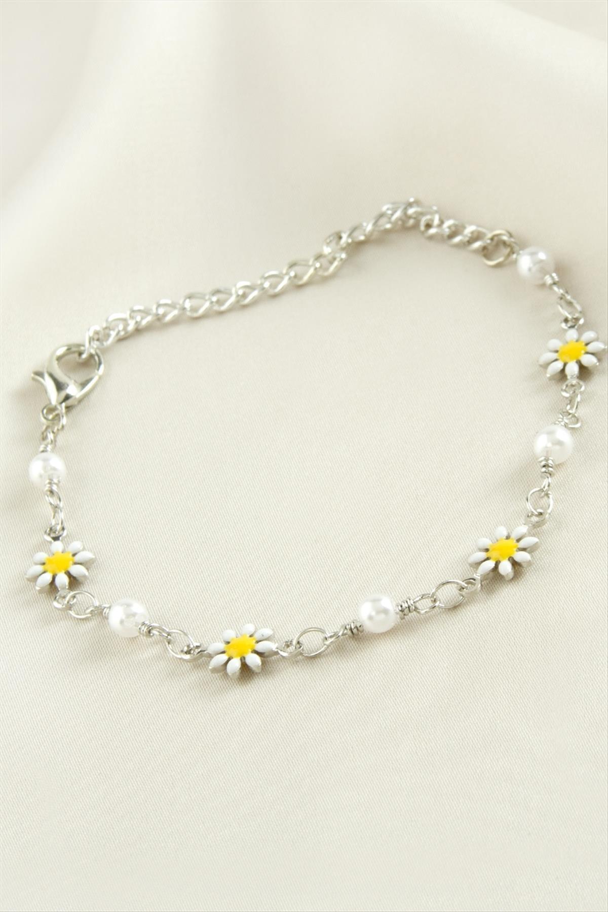Bileklik; Ürün malzemesi inci, metal ve mineli boyamadır. Ürün zincir uzunluğu 19 cmdir. Kartlıdır. Fiyat 1 adet için geçerlidir.