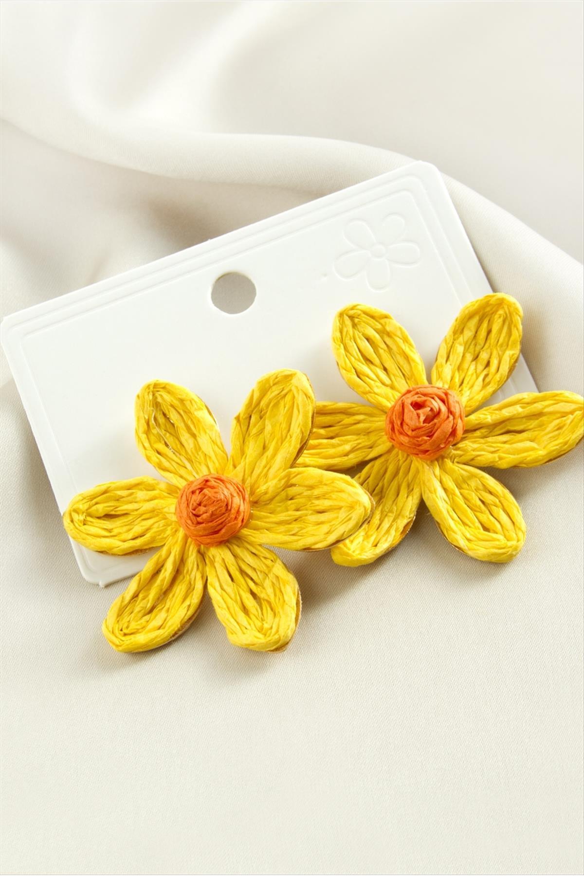 Küpe; Ürün malzemesi metal üzeri hasır kaplamadır. Ürün boyu 3,5 cmdir. Kartlı ve paketiyle beraber gönderilecektir.
