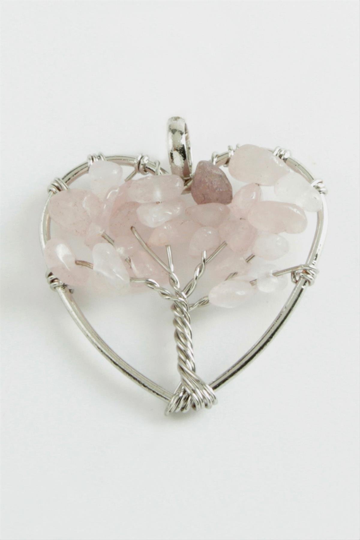 Pembe Kuvars Kalp Doğaltaş Kolye Ucu