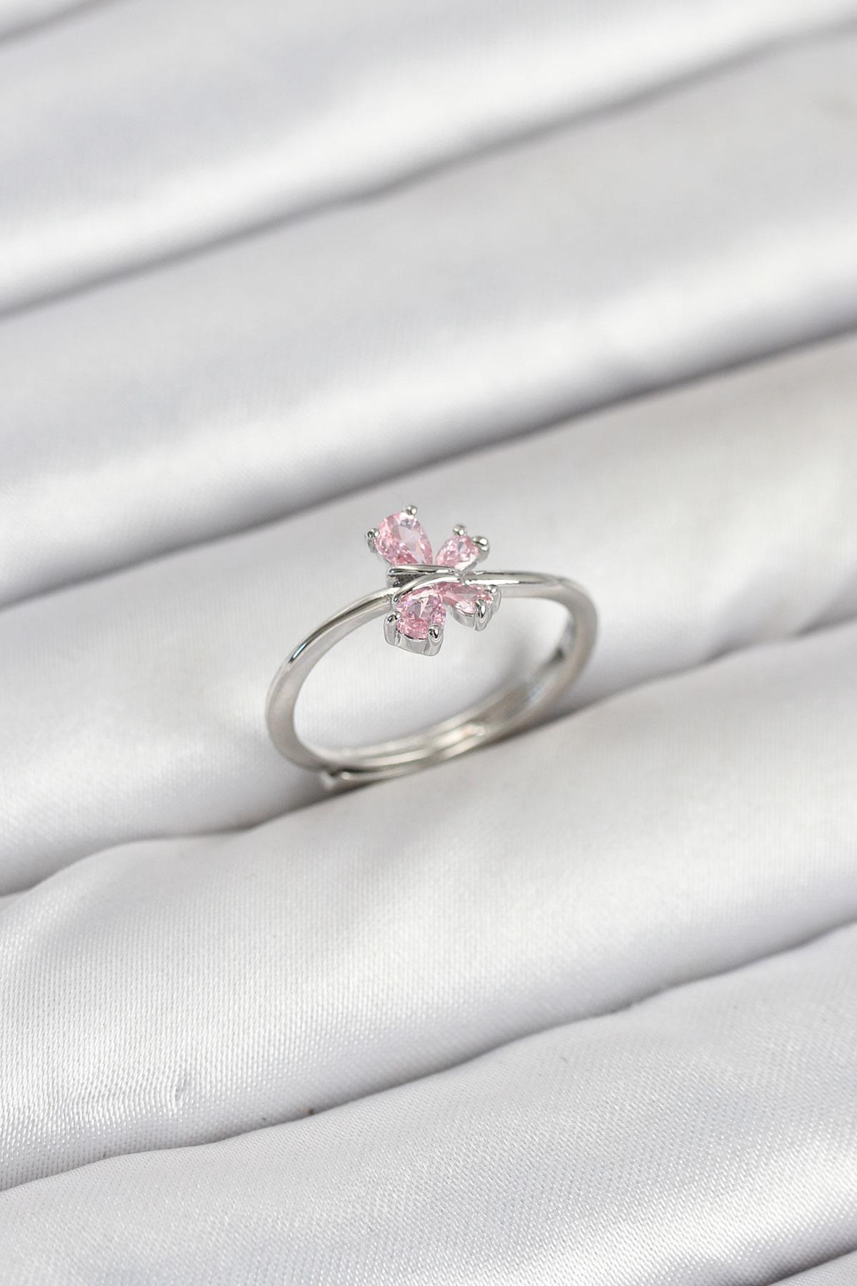 Pirinç Gümüş Renk Pembe Kelebek Kadın Yüzük - PRT3500EB09043