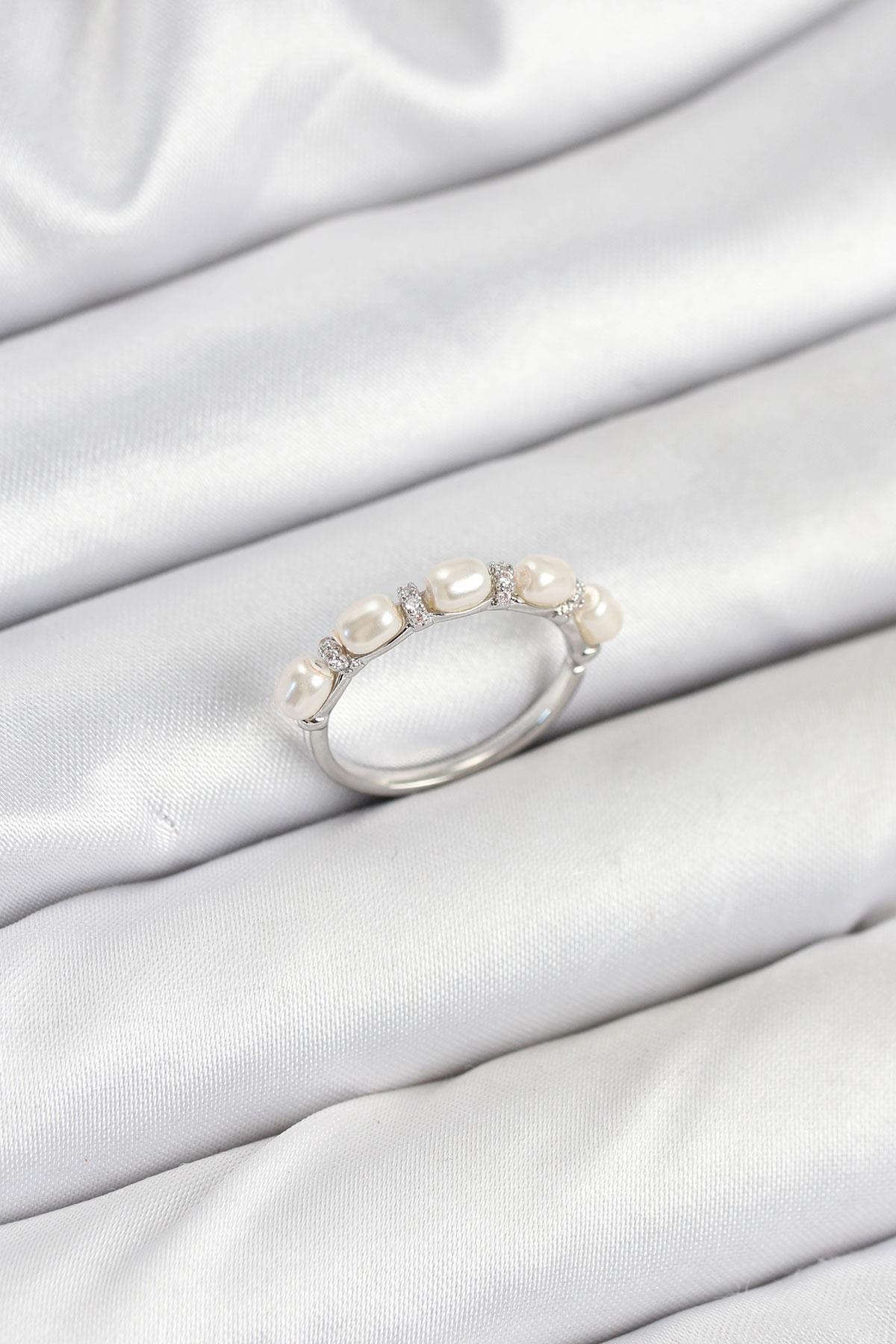 Pirinç Gümüş Renk Sıralı İncili Kadın Yüzük - PRT3500EB09017