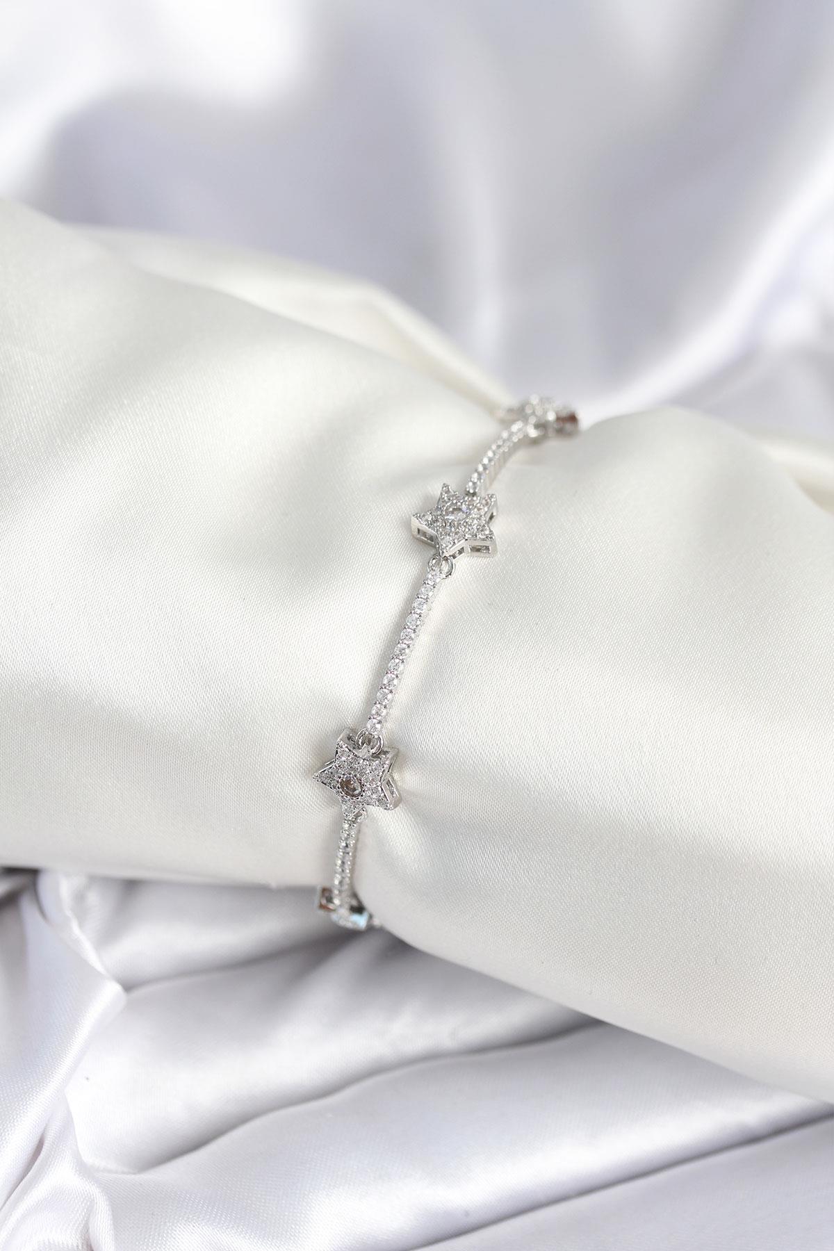 Pirinç Gümüş Renk Yıldız Model Kadın Bileklik - PRT3500EB09116