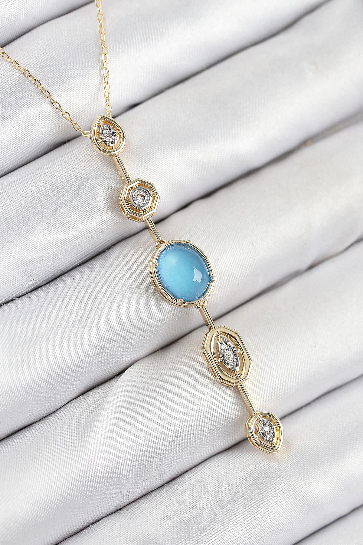 Pirinç Zincir Mavi Gold Renk Zirkon Taşlı Y Kolye