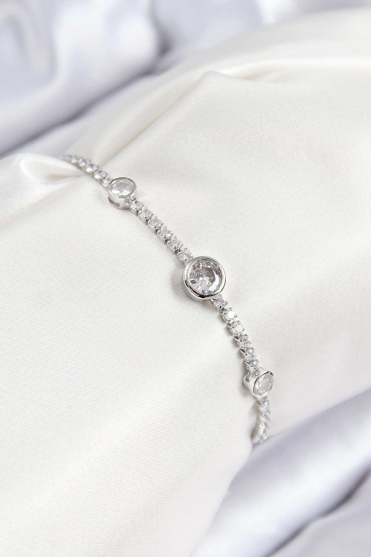 Pirinç Zirkon Taşlı Daire Model Gümüş Renk Asansörlü Kadın Bileklik - PRT3500EB08472