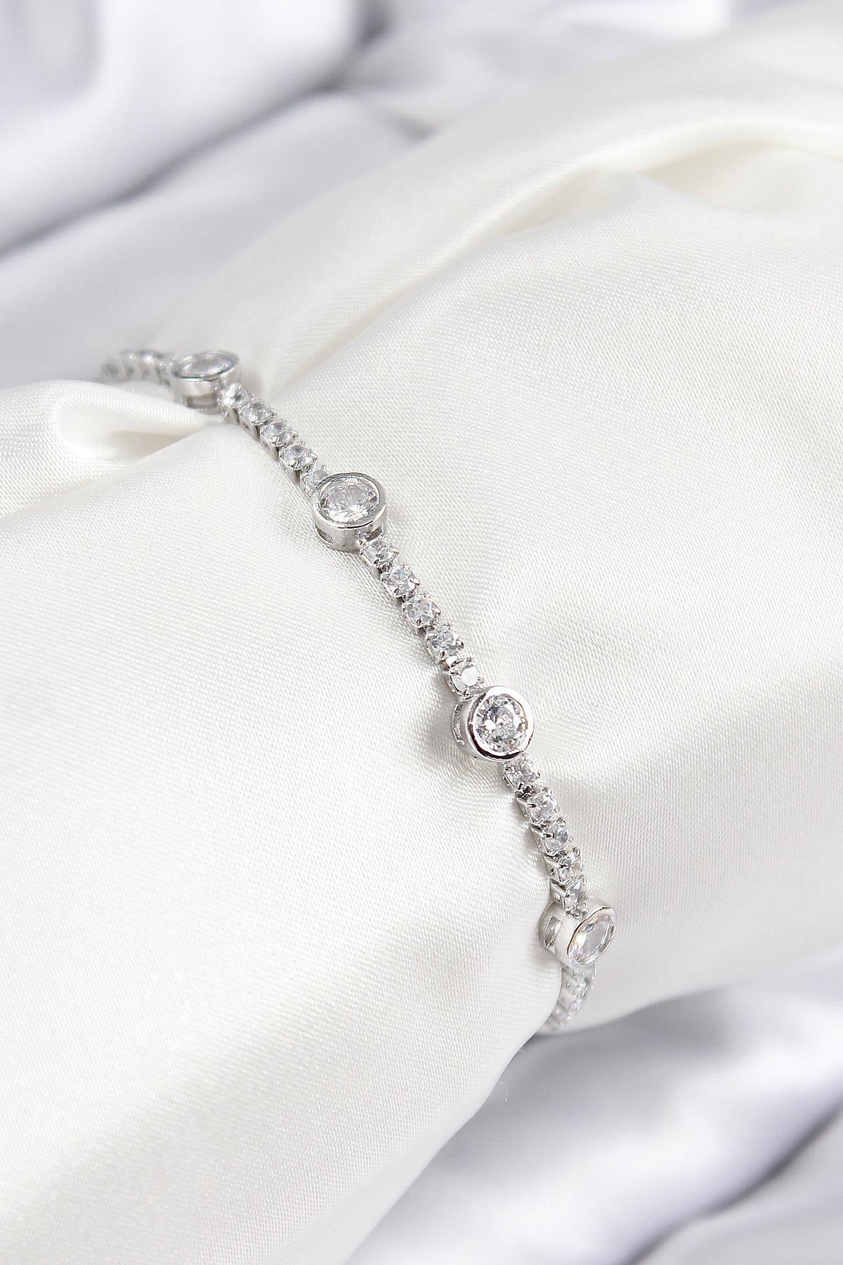 Pirinç Zirkon Taşlı Daire Model Gümüş Renk Asansörlü Kadın Bileklik - PRT3500EB08484