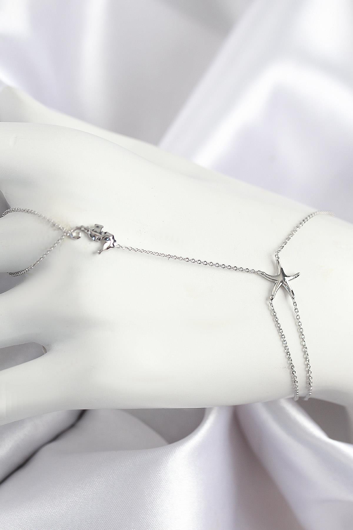 Pirinç Zirkon Taşlı Deniz Atı Ve Yıldız Model Gümüş Renk Şahmeran - PRT3500EB08612
