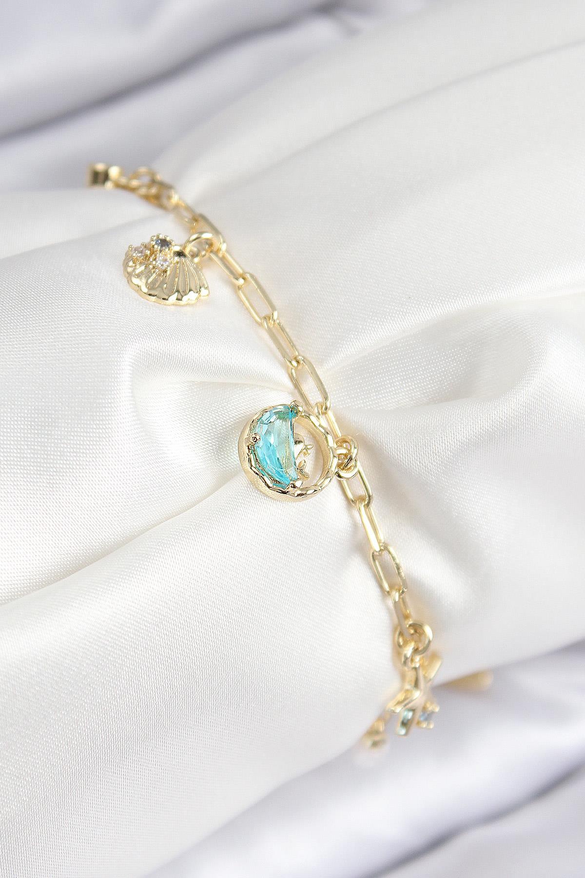 Pirinç Zirkon Taşlı İstiridye Model Gold Renk Kadın Bileklik - PRT3500EB08557