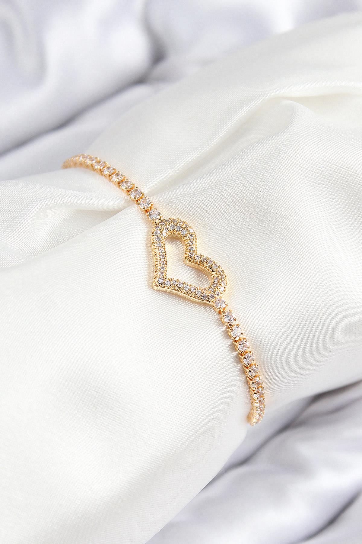 Pirinç Zirkon Taşlı Kalp Model Gümüş Renk Asansörlü Kadın Bileklik