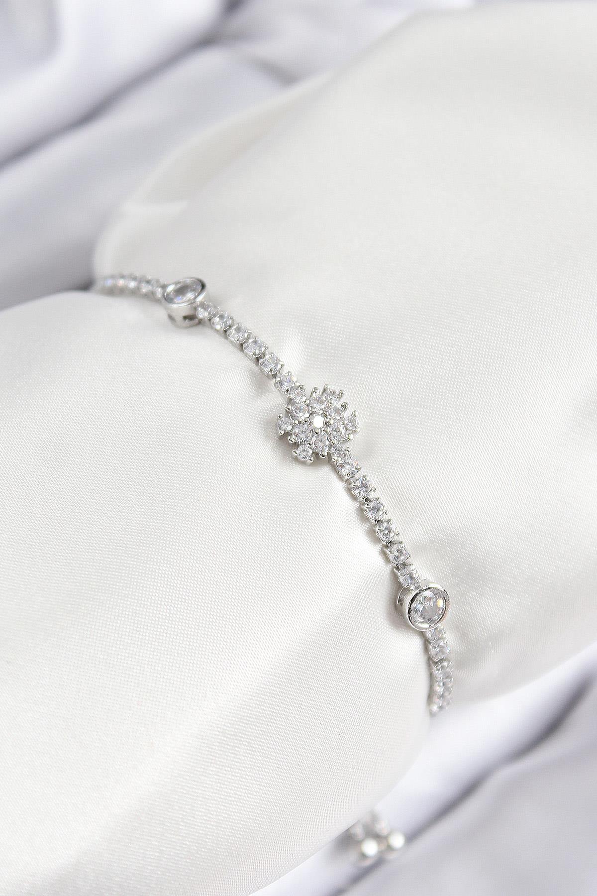 Pirinç Zirkon Taşlı Kar Tanesi Model Gümüş Renk Asansörlü Kadın Bileklik - PRT3500EB08462