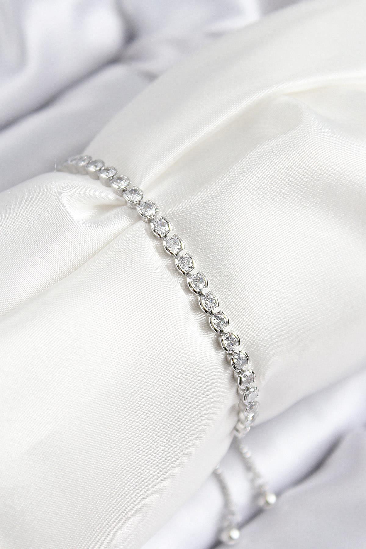 Pirinç Zirkon Taşlı Sıralı Model Gümüş Renk Asansörlü Kadın Bileklik - PRT3500EB08466