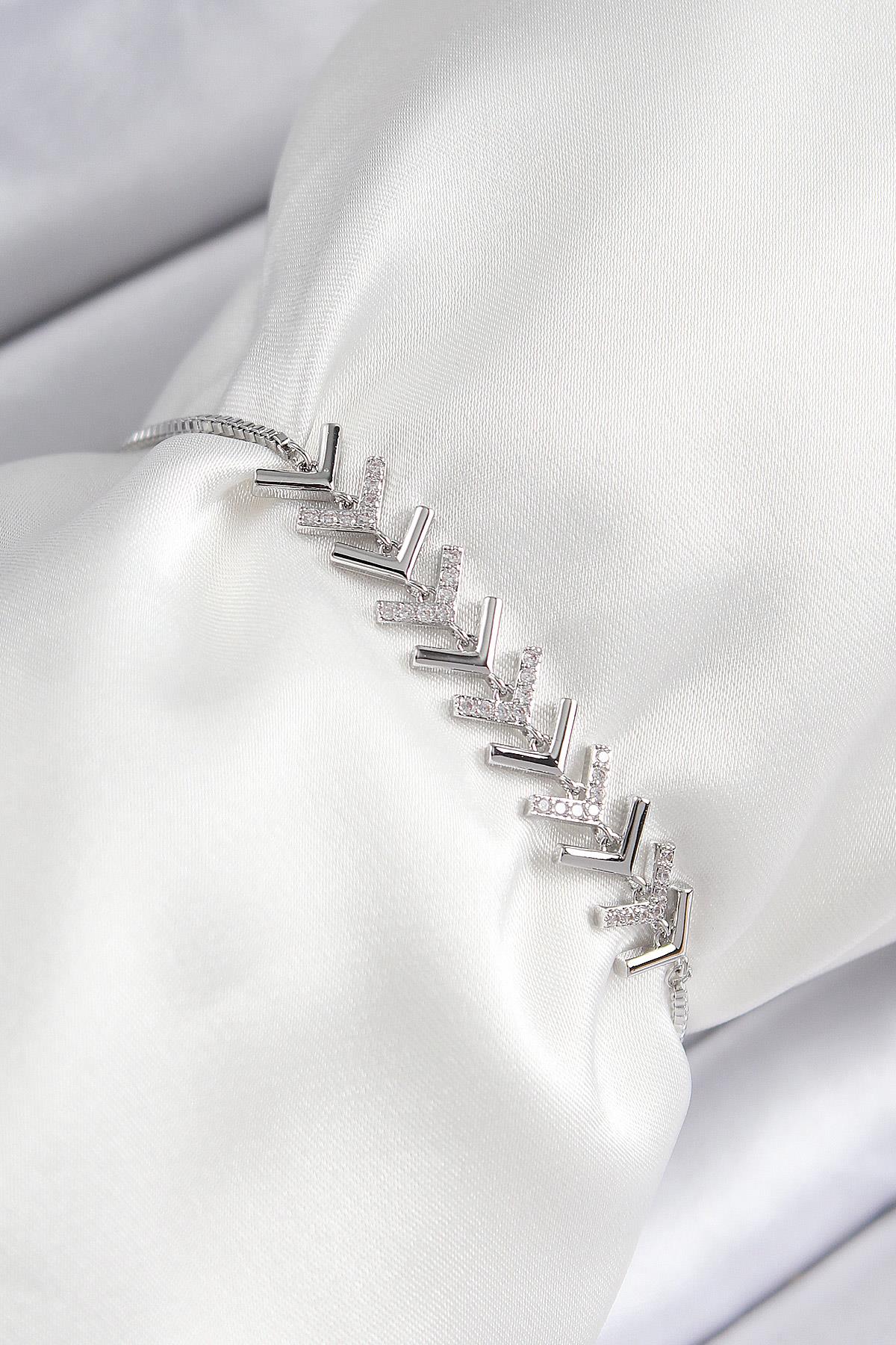 Pirinç Zirkon Taşlı Sıralı Ok Model Gümüş Renk Asansörlü Kadın Bileklik - PRT3500EB07749