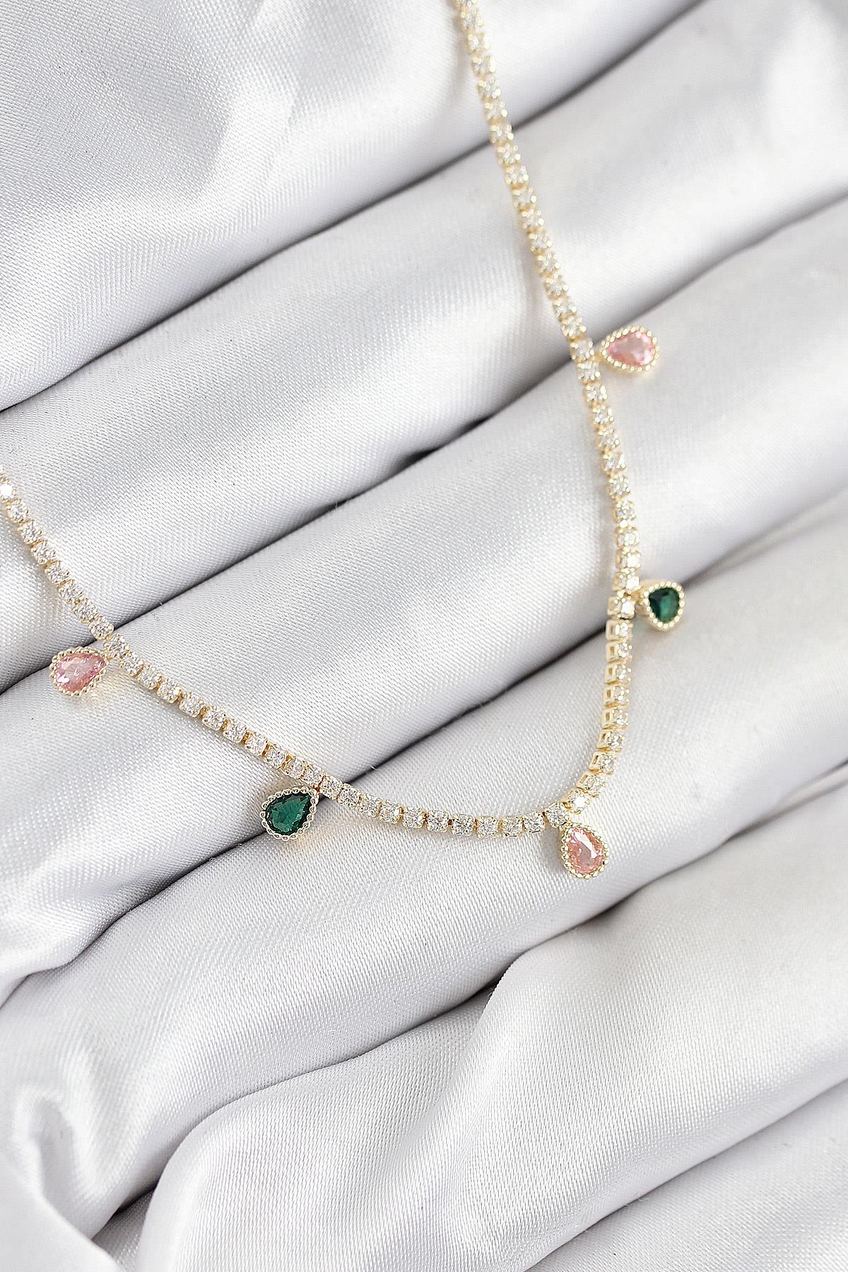 Pirinç Zirkon Taşlı Su Yolu Damla Model Gold Renk Kadın Kolye