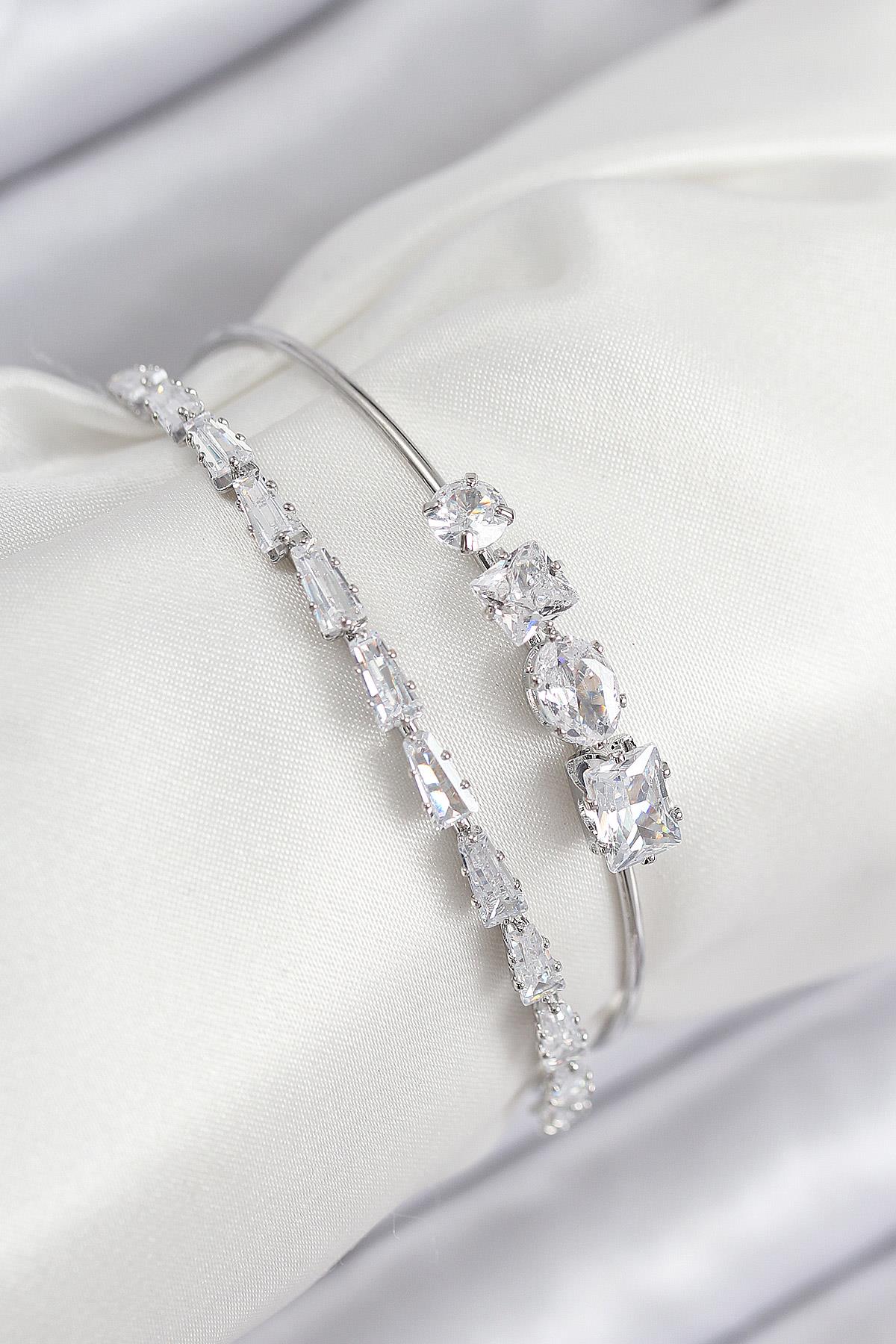 Pirinç Zirkon Taşlı Su Yolu Model Gümüş Renk Kadın Bileklik