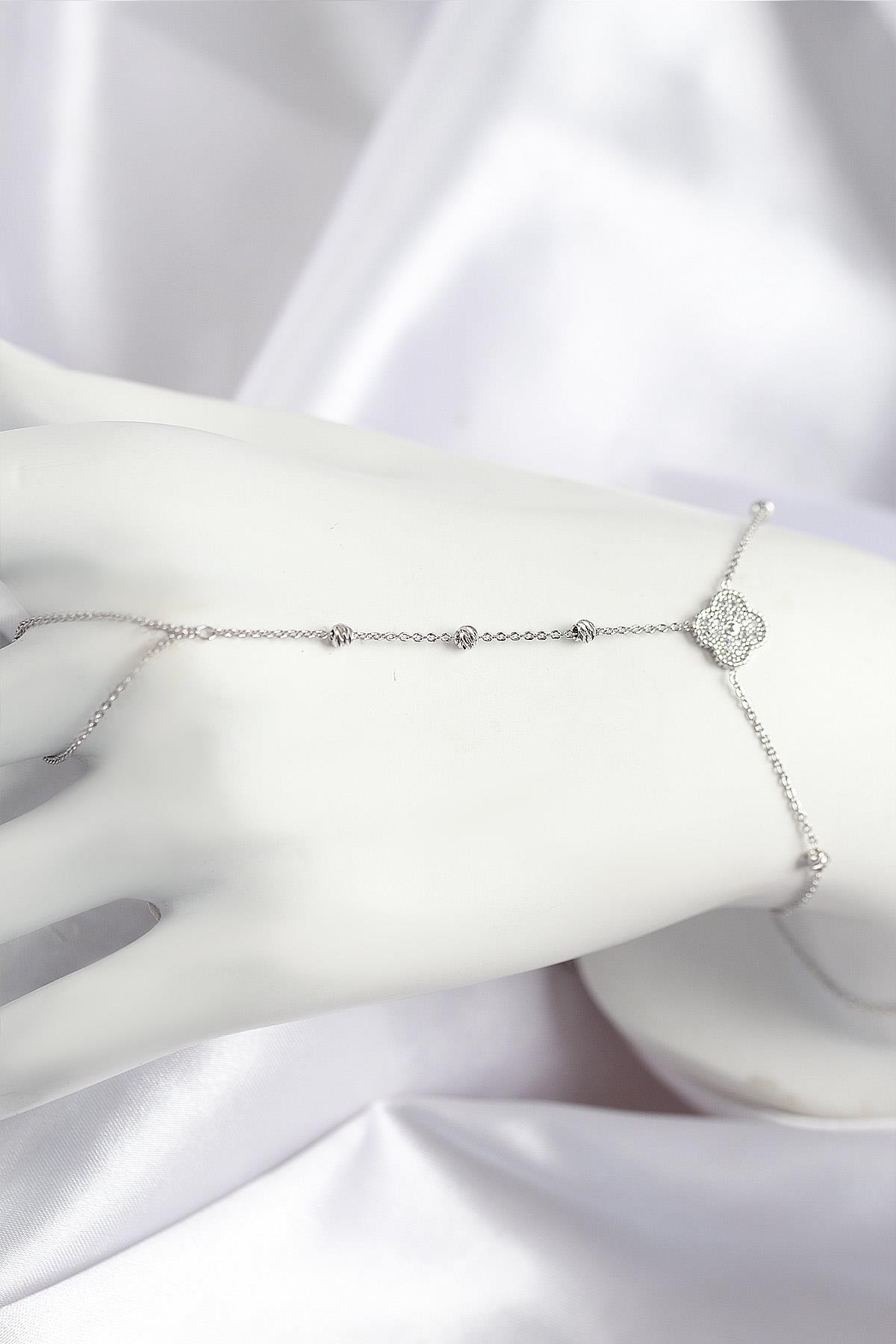 Pirinç Zirkon Taşlı Yonca Model Gümüş Renk Şahmeran - PRT3500EB08618