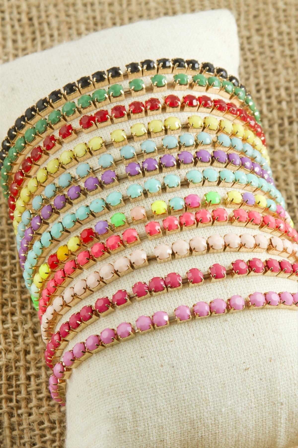 Bileklik; Ürün malzemesi metal ve kristal taşlıdır. Ürün esneme özelliği vardır. Ürün renkleri asortilidir. Siparişlerinizde karışık olarak gönderilecektir. Fiyat 1 adet için geçerlidir. Ürün kristal boyu 4 mmdir.