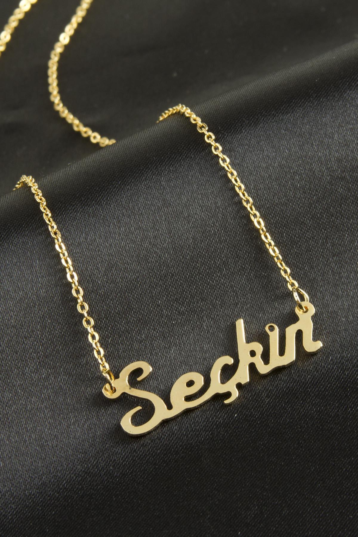 Seçkin isimli kolye. İsimli kolye pirinç madeninden ve altın kaplamalıdır. Kişiye özel üretilmektedir.Yazdırmak istediğiniz ismi bize mesaj olarak iletmeniz gerekmektedir. Kullanıma bağlı olarak uzun süre kullanıma uygundur. Ürün malzemesi 1.sınıf kalitededir. Ürün ve zinciri sarı renktedir. Ürün zincir boyu 45 cm ve ürün üzerindeki isimler yaklaşık 3 cmdir. İsim boyları ürün ismine göre degişiklik göstermektedir.