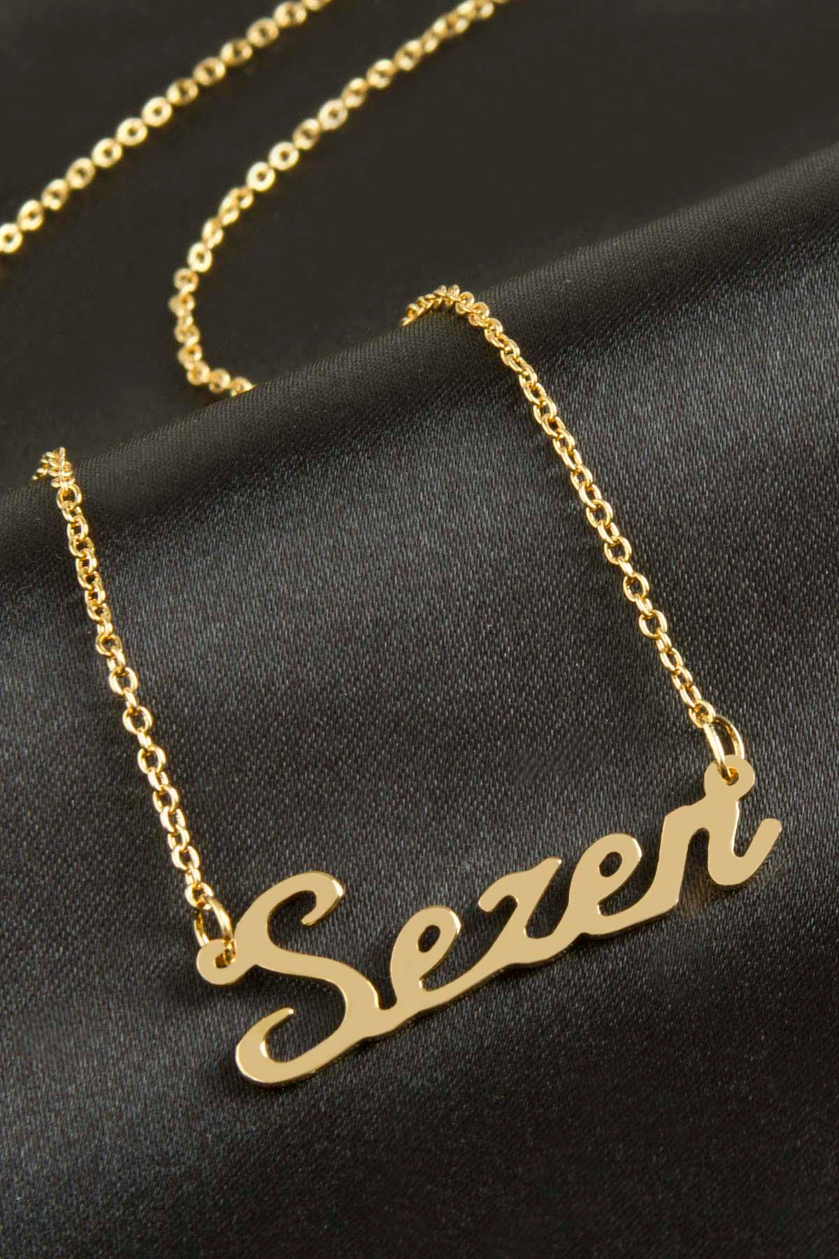 Sezen isimli kolye. İsimli kolye pirinç madeninden ve altın kaplamalıdır. Kişiye özel üretilmektedir.Yazdırmak istediğiniz ismi bize mesaj olarak iletmeniz gerekmektedir. Kullanıma bağlı olarak uzun süre kullanıma uygundur. Ürün malzemesi 1.sınıf kalitededir. Ürün ve zinciri sarı renktedir. Ürün zincir boyu 45 cm ve ürün üzerindeki isimler yaklaşık 3 cmdir. İsim boyları ürün ismine göre degişiklik göstermektedir.