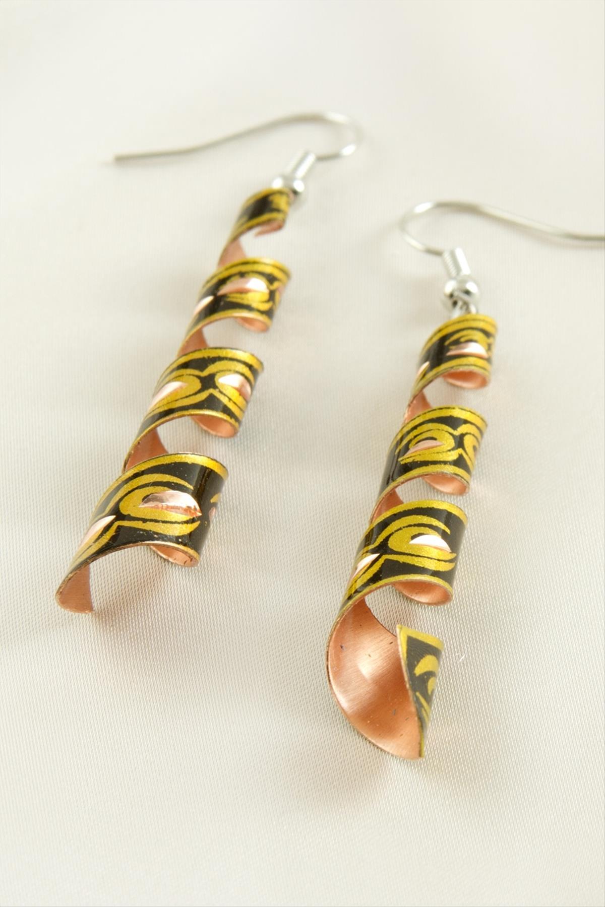 Küpe; Ürün bakır malzemeden üretilmiştir. Küpe boyu 6 cmdir. Kartsız olarak gönderilecektir.