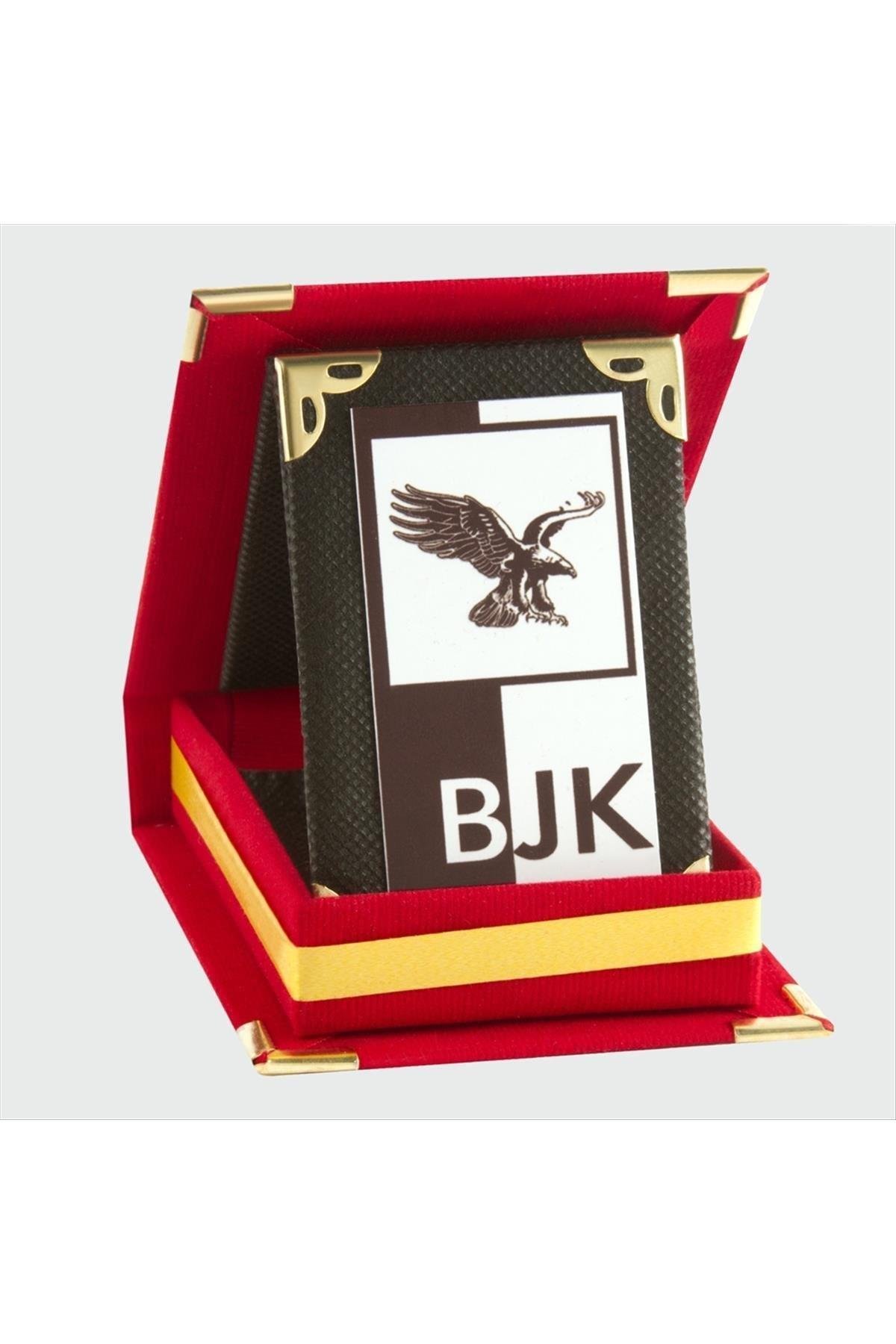 Süet kutulu plaket, metal üzerine yazı yazılarak üretilmiştir, ölçüleri kurulu vaziyette; yükseklik: 11 cm, genişlik: 8 cm'dir.