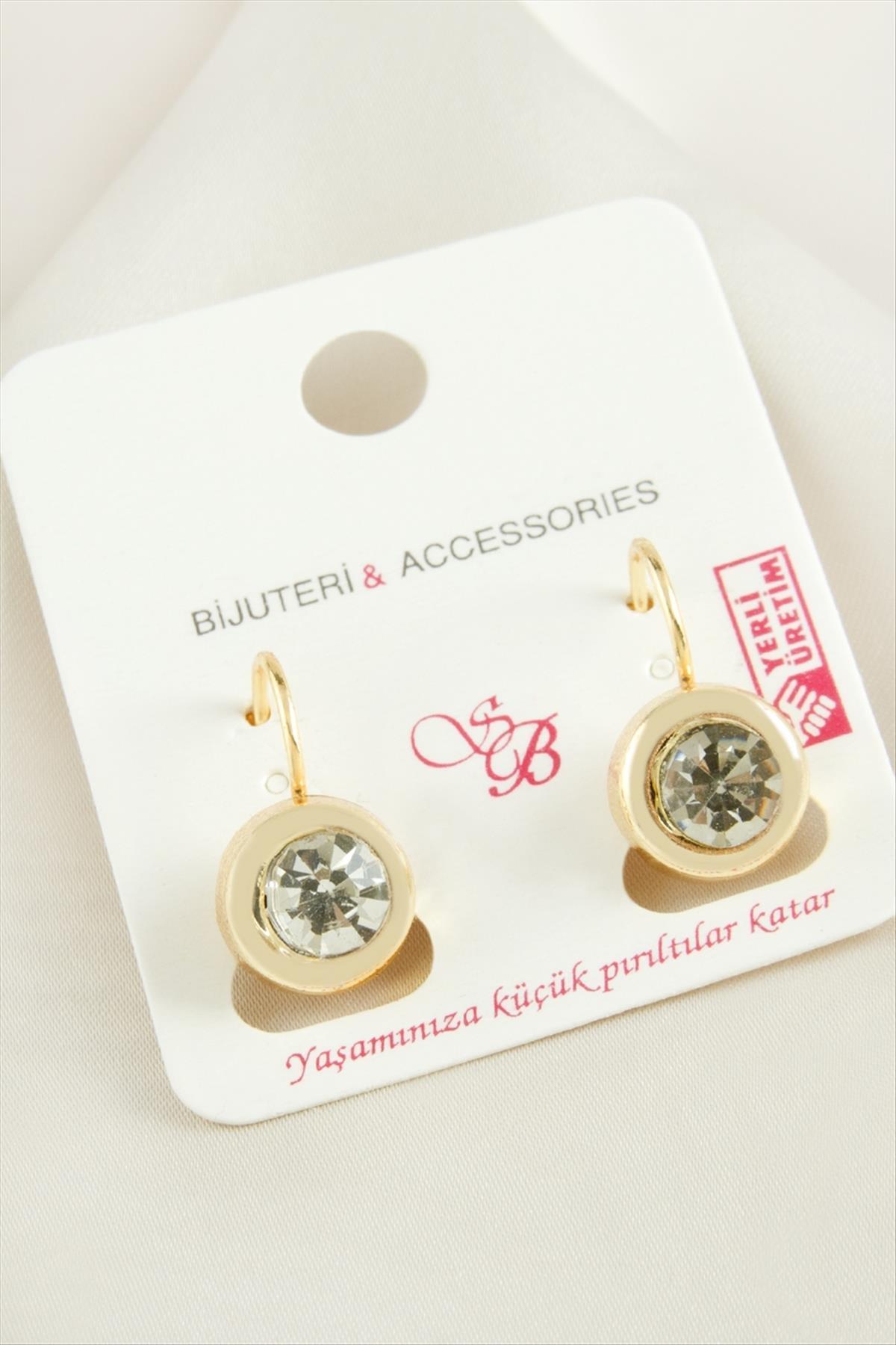 Küpe; Ürün malzemesi taş ve metaldir. Ürün boyu 1,5 cmdir. Ürün arkası klipsilidir.