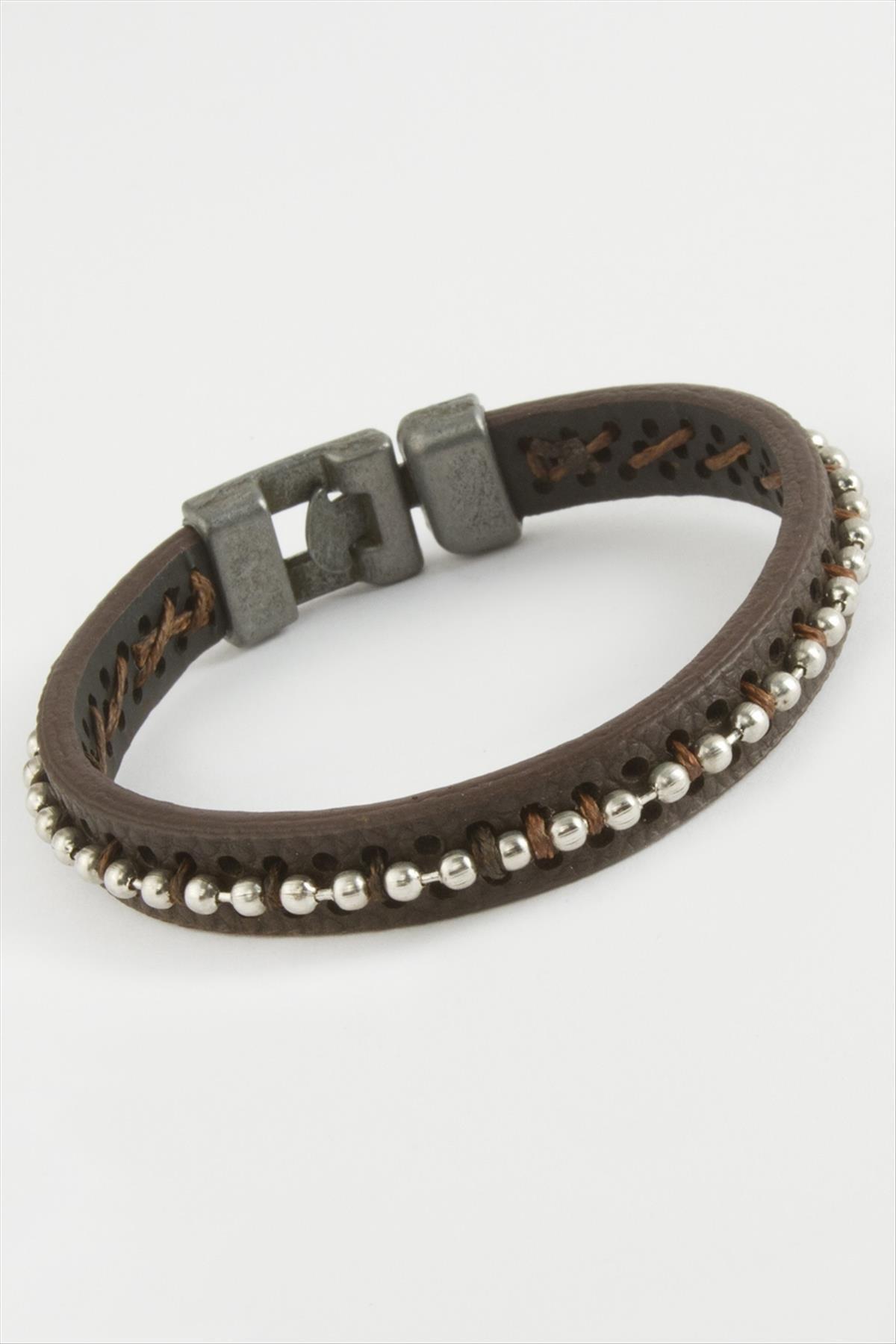 Top Metal Boncuklu Kaliteli Suni Deri Bileklikc