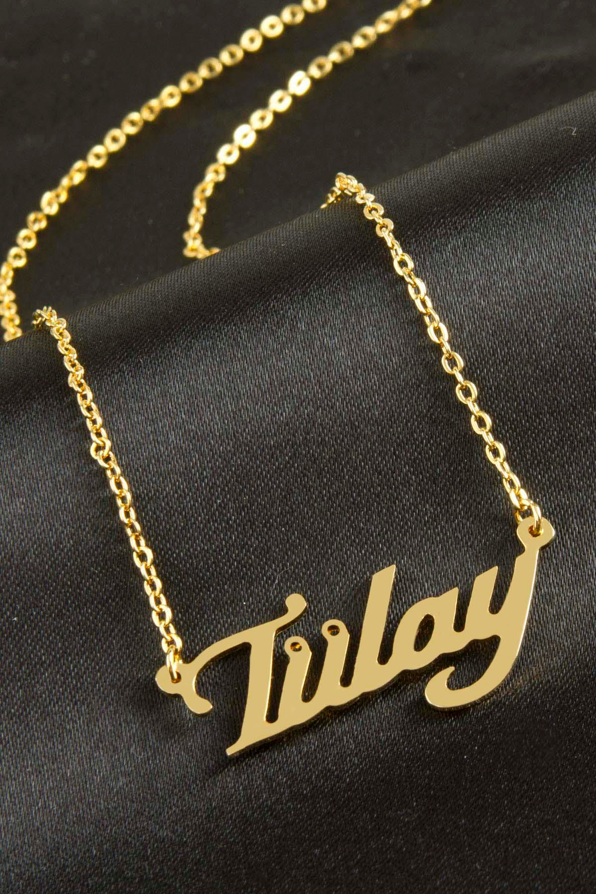 Tülay isimli kolye. İsimli kolye pirinç madeninden ve altın kaplamalıdır. Kişiye özel üretilmektedir.Yazdırmak istediğiniz ismi bize mesaj olarak iletmeniz gerekmektedir. Kullanıma bağlı olarak uzun süre kullanıma uygundur. Ürün malzemesi 1.sınıf kalitededir. Ürün ve zinciri sarı renktedir. Ürün zincir boyu 45 cm ve ürün üzerindeki isimler yaklaşık 3 cmdir. İsim boyları ürün ismine göre degişiklik göstermektedir.