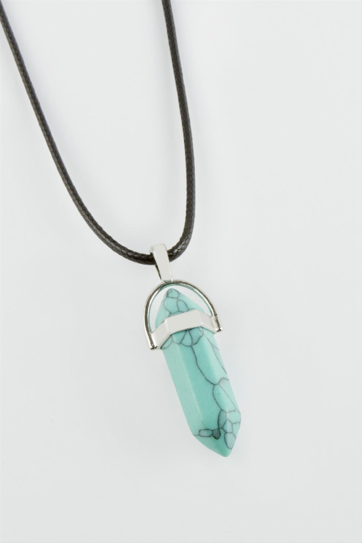 Kolye; Ürün malzemesi point taş ve metaldir. Ürün boyu 45 cmdir. Ürün ucundaki aparat boyu 3,5 cmdir. Ürün renklerinde doğaltaş oldukları için küçük farklılıklar gösterebilir.