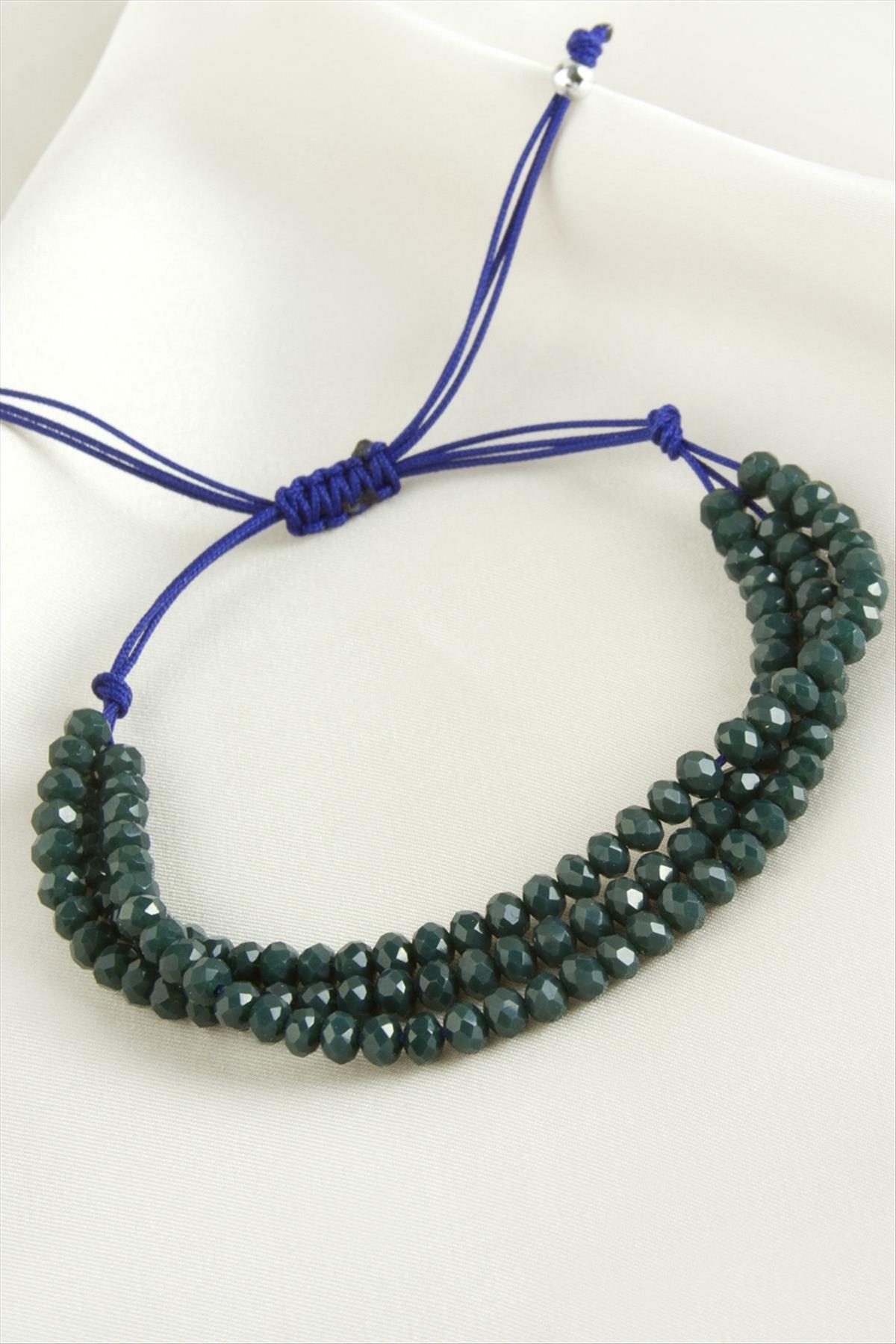Bileklik; Ürün malzemesi makrome ip ve kristaldir. Ürün kartlıdır. Ürün asansörlüdür bileğe göre ayarlanabilir.