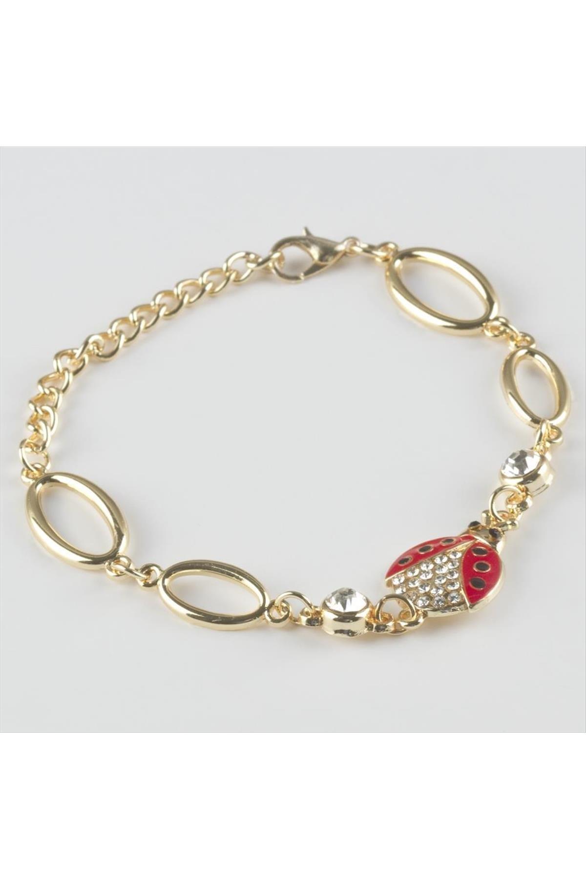 Uğur Böceği Figürlü Taşlı Metal Bileklik