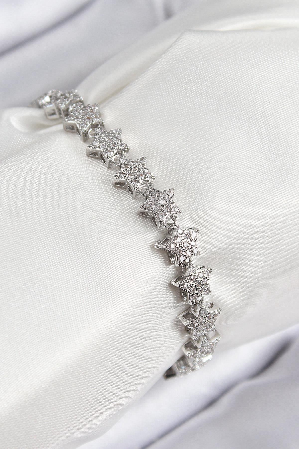 VIP Seri Pirinç Zirkon Taşlı Sıralı Yıldız Model Gümüş Renk Kadın Bileklik