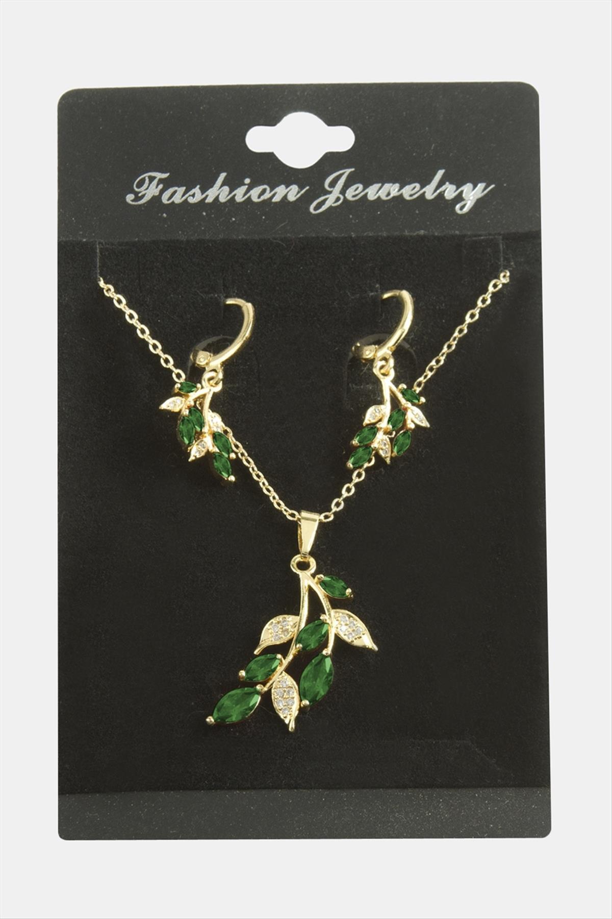 Yaprak Zirkon Taşlı Set Kolye