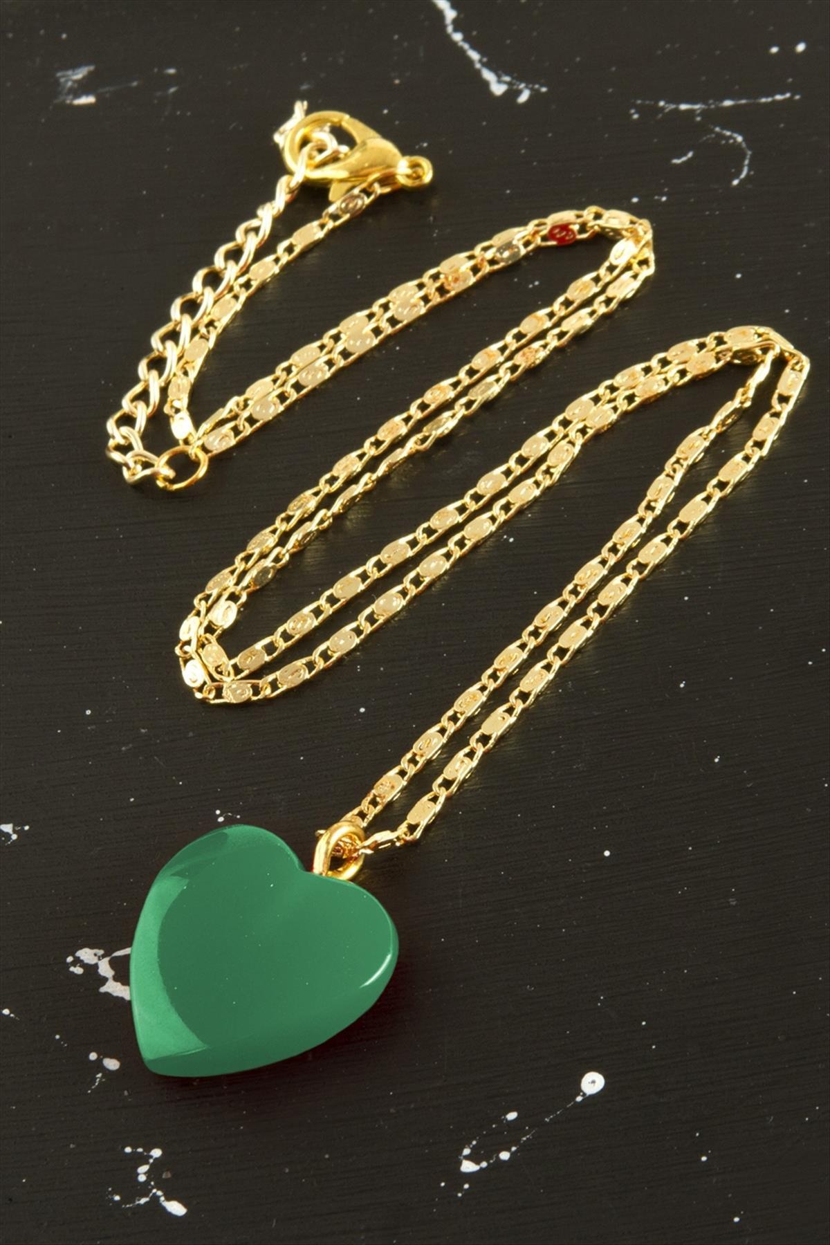 Kolye; Ürün zincir bölümü metal ve kalp bölümü plastiktir. Zincir uzunluğu 45 cm ve ucundaki kalp aparat boyu 2 cmdir.