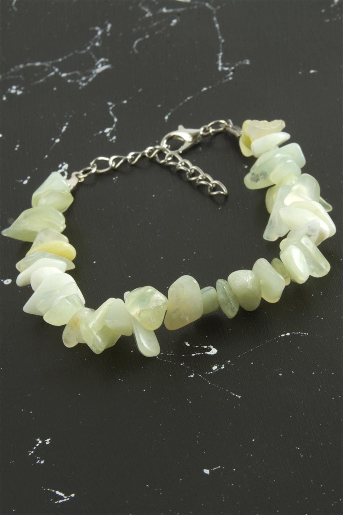 Bileklik; Ürün malzemesi yeşim doğal taşından imal edilmiştir. Ürün uzunluğu 19 cmdir.