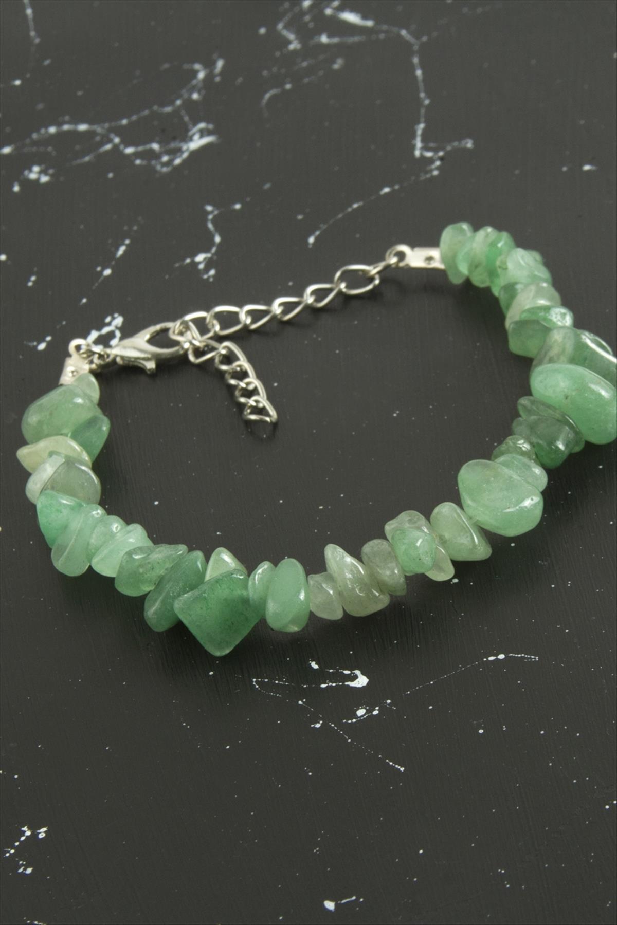 Bileklik; Ürün malzemesi yeşim doğal taşından imal edilmiştir. Ürün uzunluğu 19 cmdir.