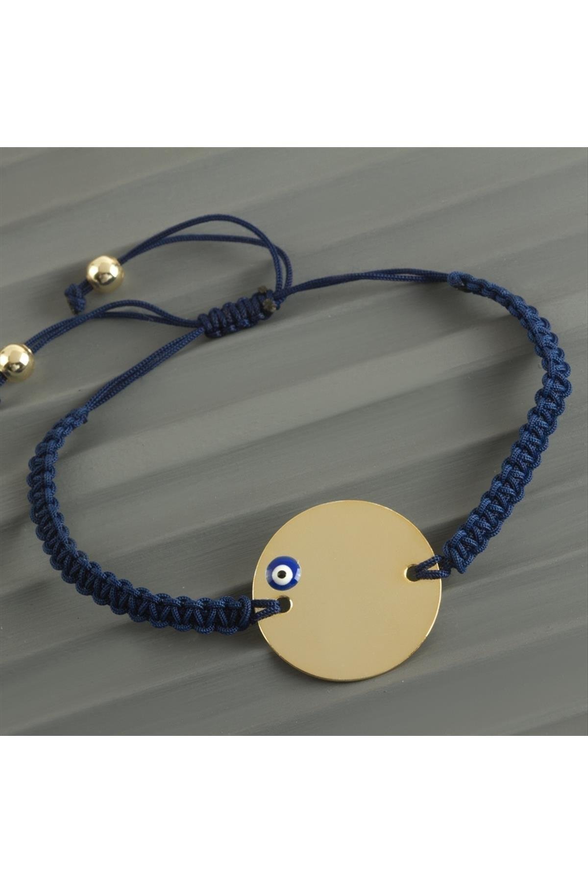 Bileklik; Ürün malzemesi makrome örgü ve metaldir. Ürün Bileğe göre ayarlamalıdır. Plaka boyu 2,5 cmdir.