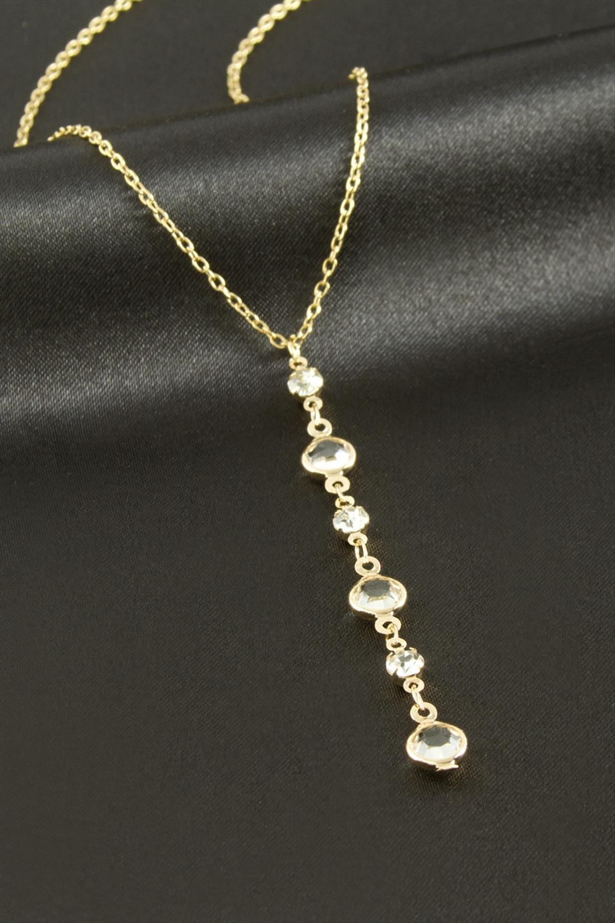 Kolye; Ürün malzemesi kristal taş ve metaldir. 1 sınıf kaliteli malzemeden üretilmiştir. Ürün boyu 54 cmdir. Kartlıdır.