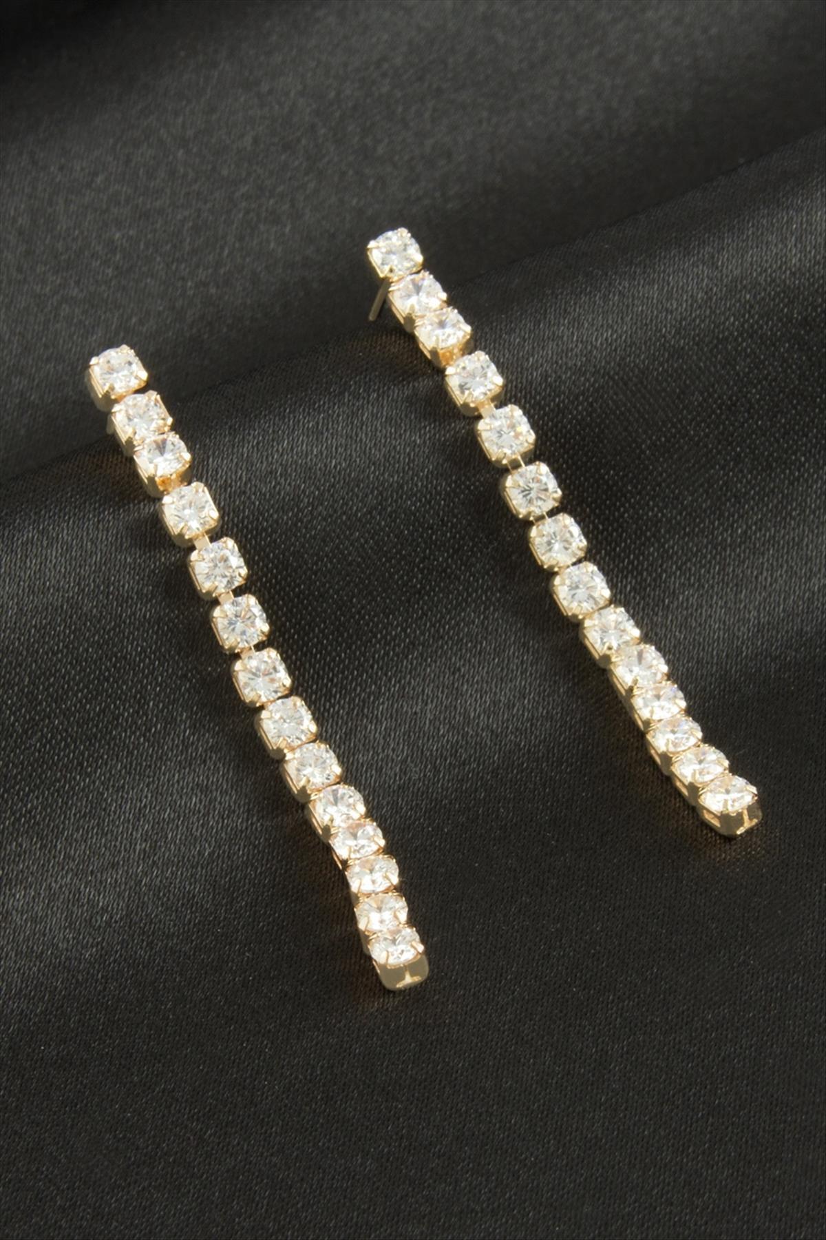 Küpe; Ürün malzemesi zirkon taş ve metaldir. Ürün 1 sınıf kaliteli malzemeden üretilmiştir. Ürün boyu 4,5 cm ve kalınlığı 0,3 mmdir. Kartlıdır.