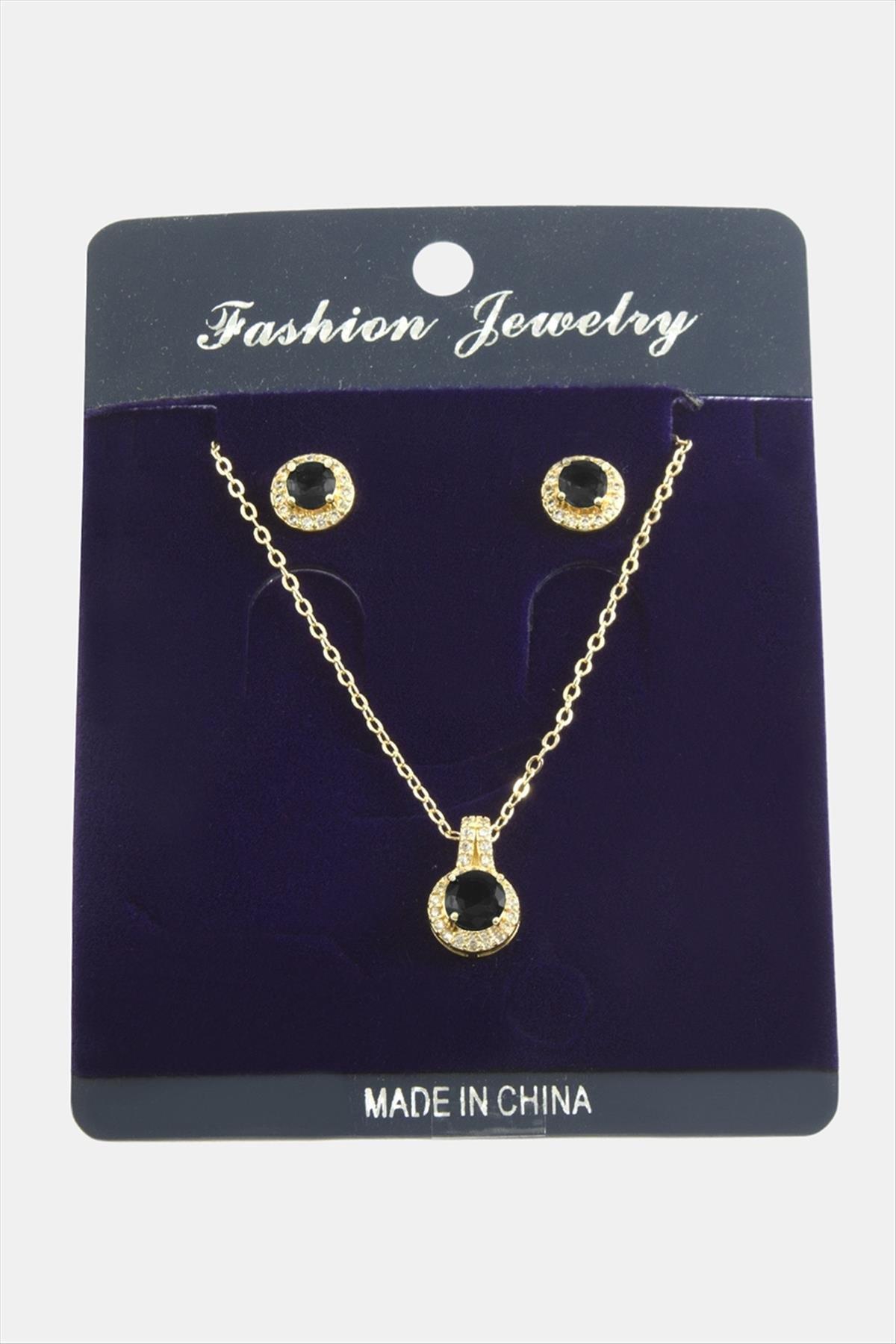 Kolye; Ürün malzemesi metal ve zirkon taştan üretilmiştir. 1 sınıf kaliteli malzeme kullanılmıştır. Ürün 1 adet kolye, ve 1 adet çift küpe vardır. Ürün zincir uzunluğu 45 santimdir. Ürün ucundaki taşlı aparat boyu 1 cmdir.