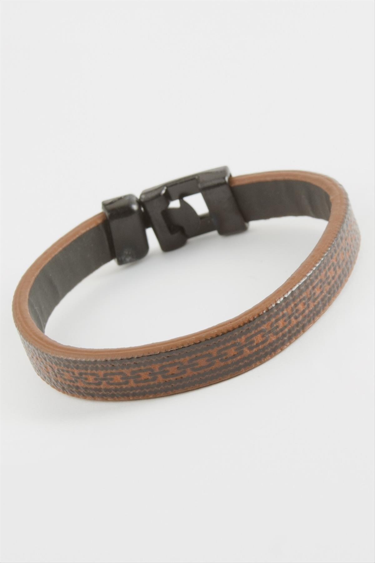 Zincir Desenli Kaliteli Suni Deri Bileklik