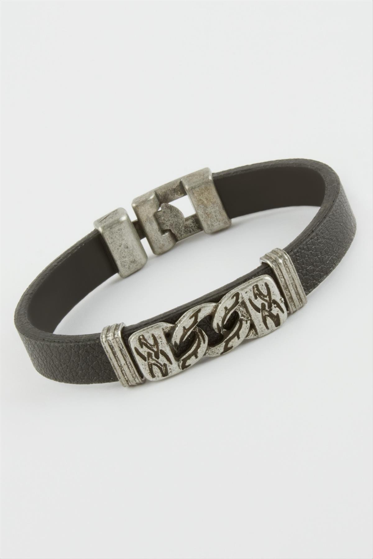 Zincir Desenli Suni Deri Bileklik