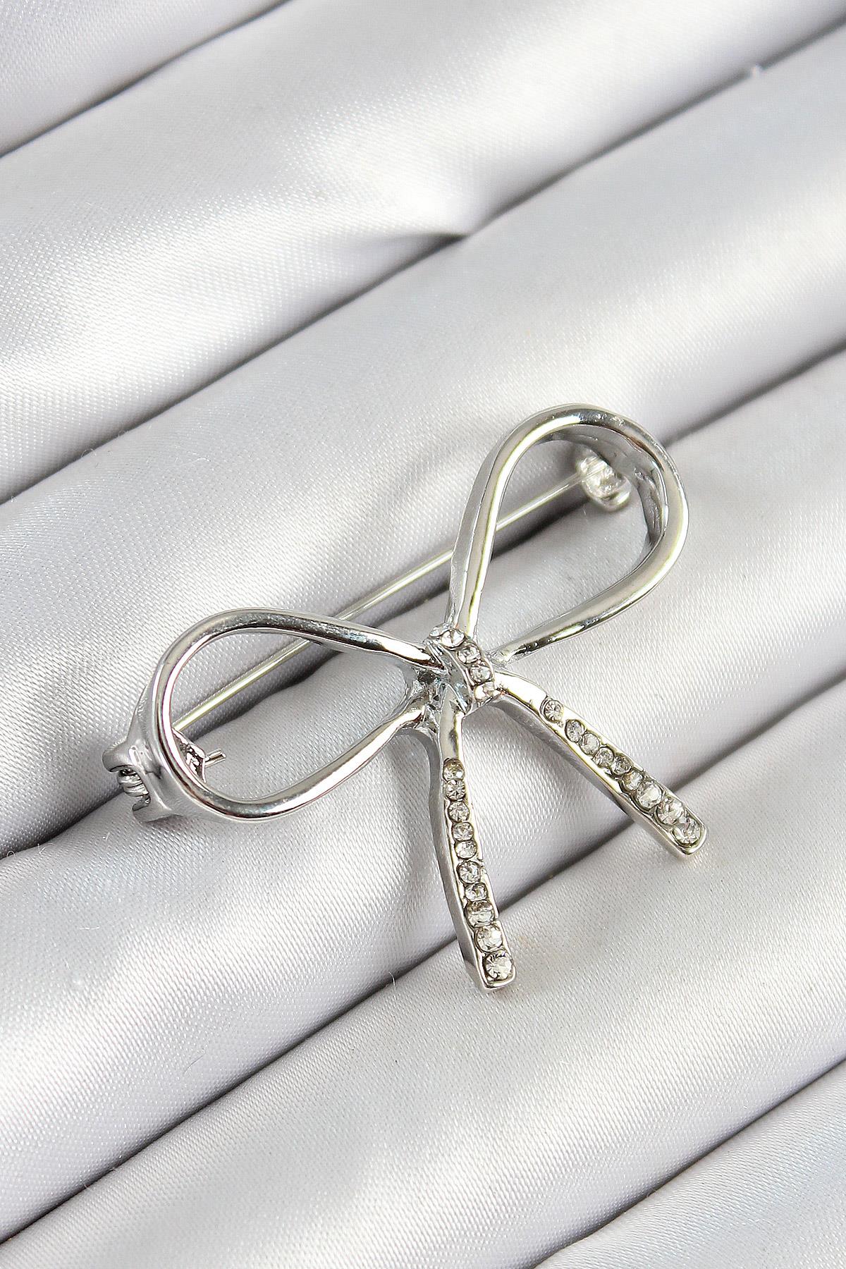 Zirkon Taş Detaylı Fiyonk Figürlü Gümüş Renk Kadın Broş - PRT3500EB06343