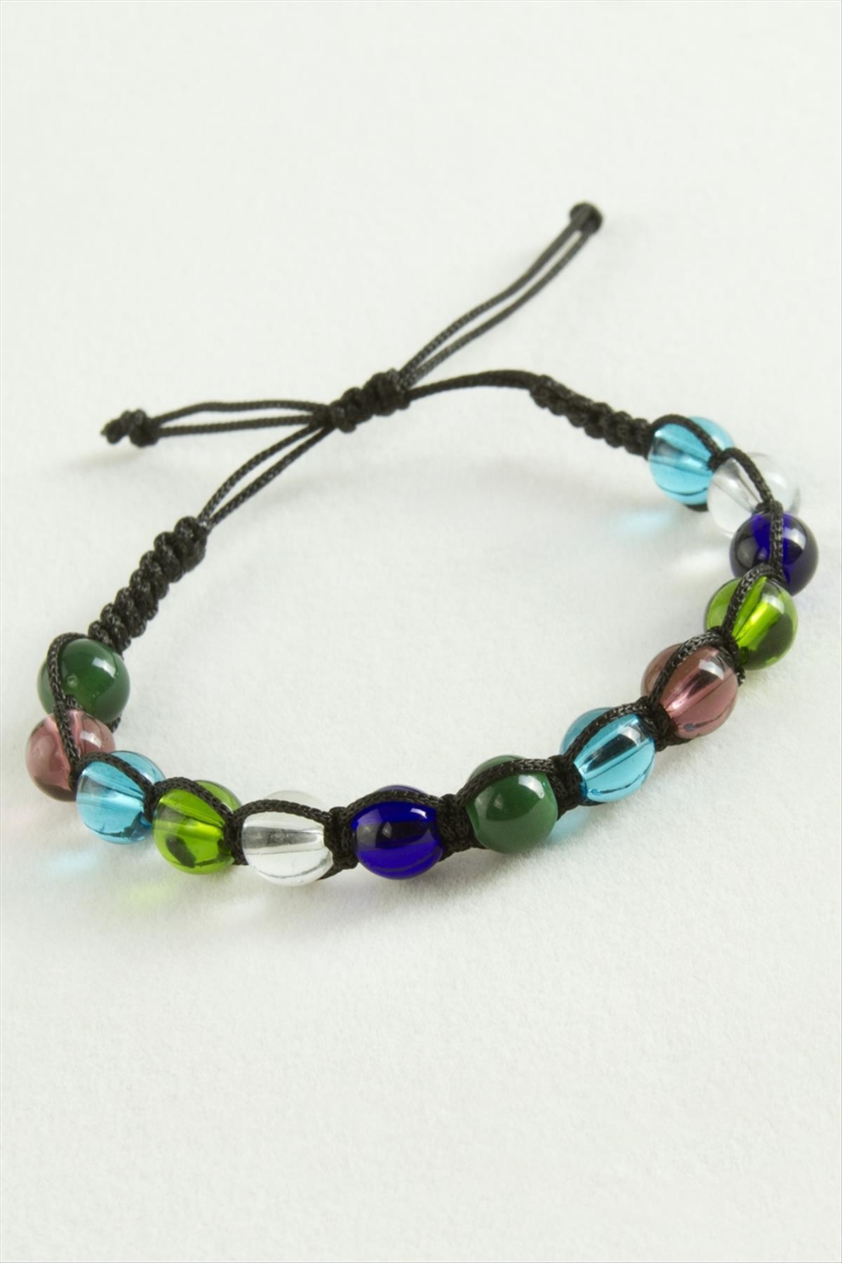 Bileklik; Ürün malzemesi cam boncuk ve makrome iptir. Ürün arkası asansörlüdür. Bileğe göre ayarlanabilir. Aparat boyu 0,8 cmdir. Kartlıdır.